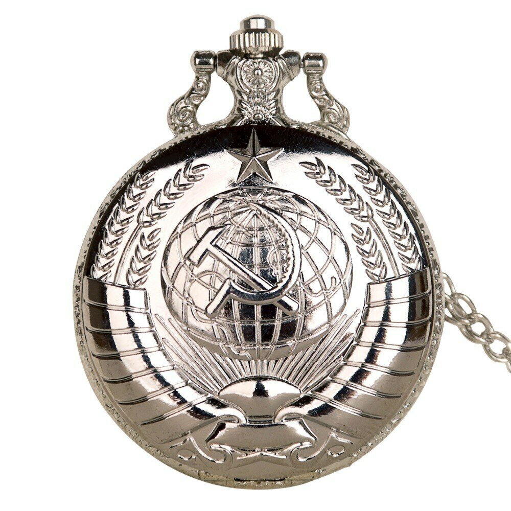 Купить Карманные часы Герб Советского Союза на цепочке, серебристые, винтаж, имитация СССР