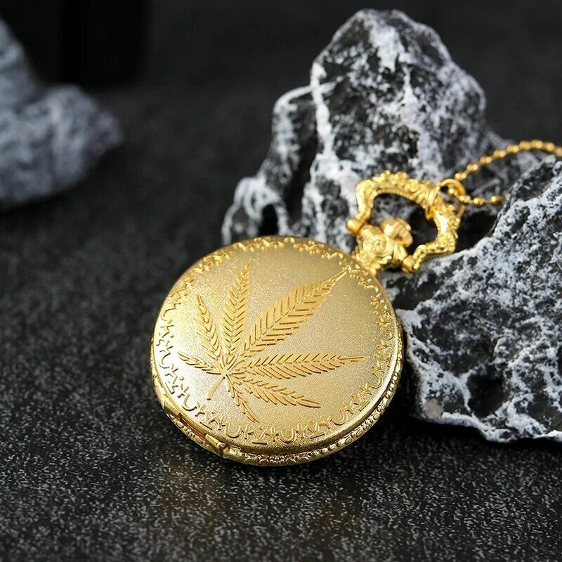 Купить Карманные часы на цепочке Канабис. Цепочка 80 см.