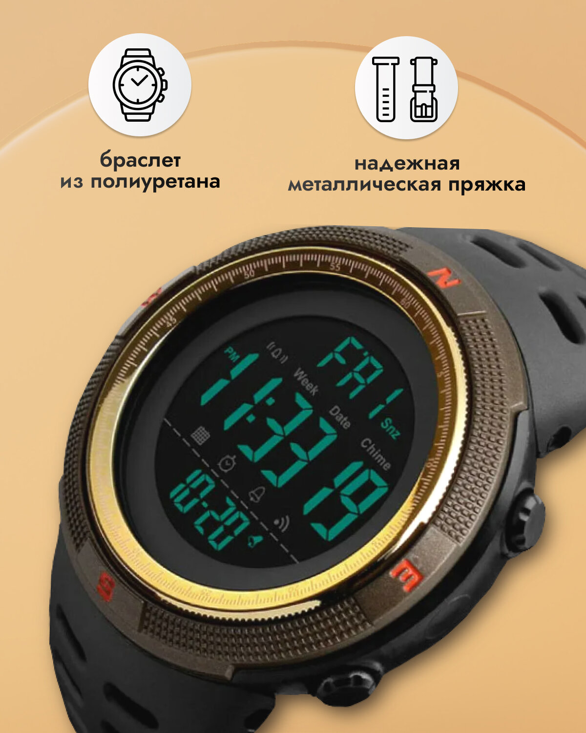 Наручные часы спортивные (золотой)/спортивные часы/мужские часы/женские часы/электронные часы/кварцевые часы