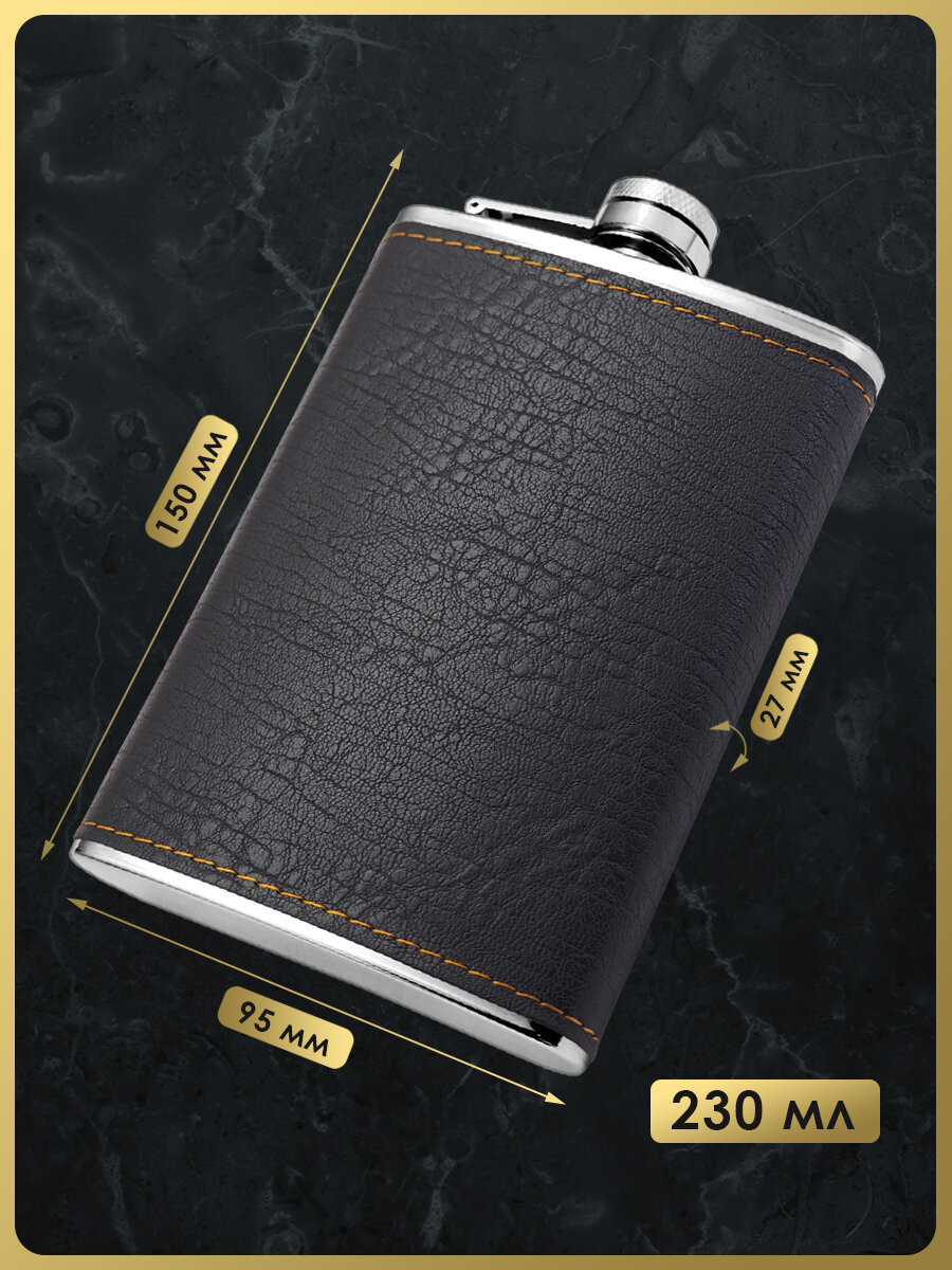 Фляга FL9-101, 230 мл, нержавеющая сталь, кожа, цвет черный интересное: