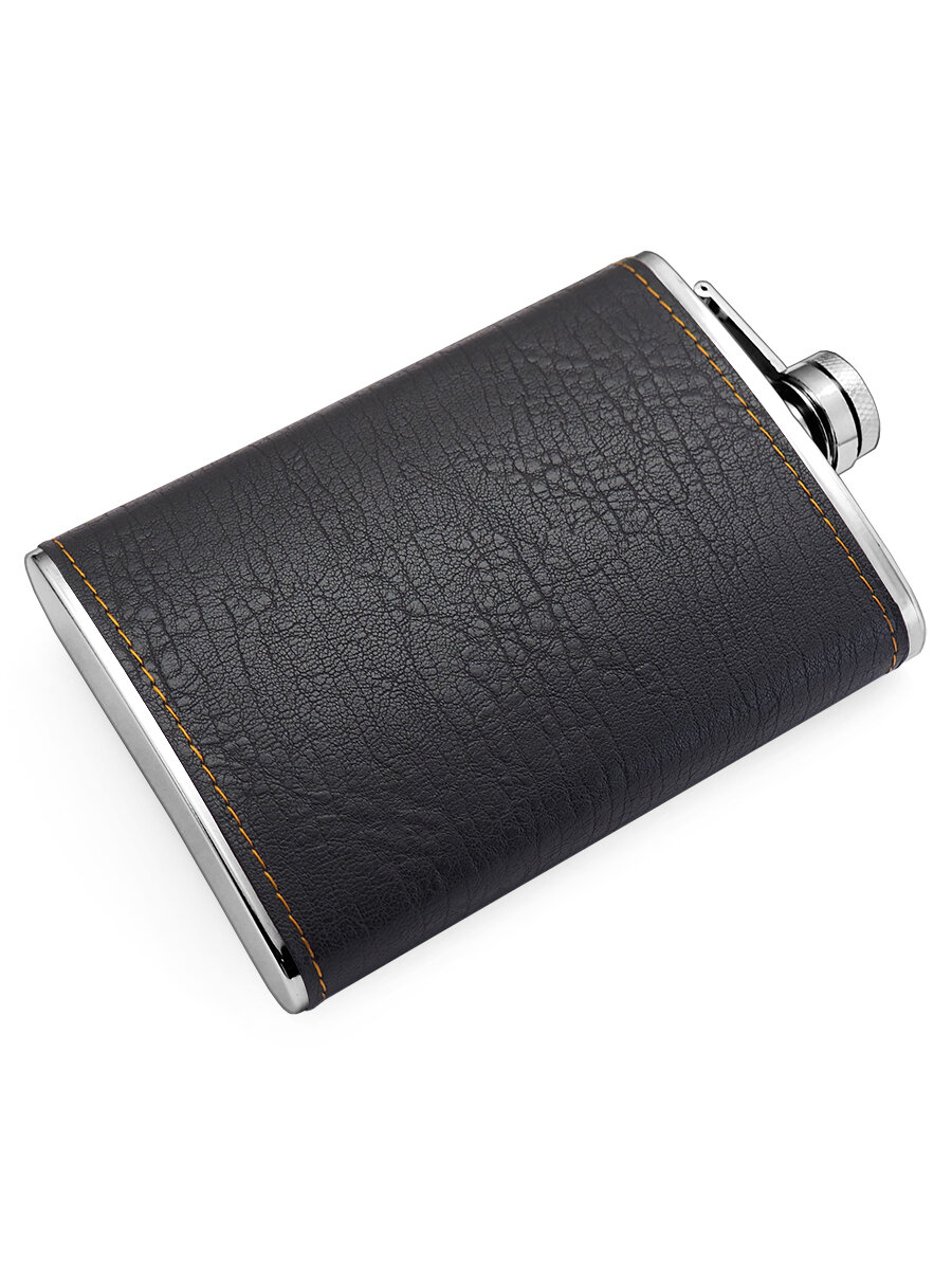 Купить Фляга FL9-101, 230 мл, нержавеющая сталь, кожа, цвет черный