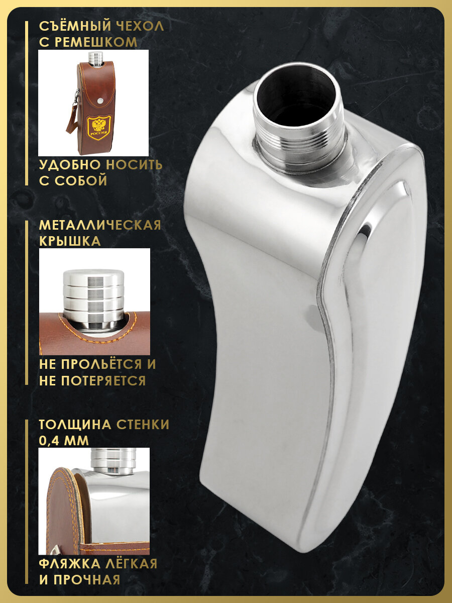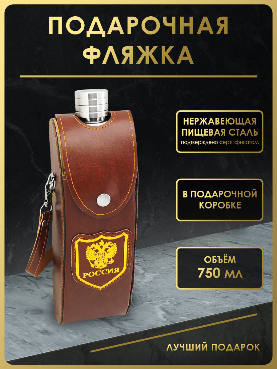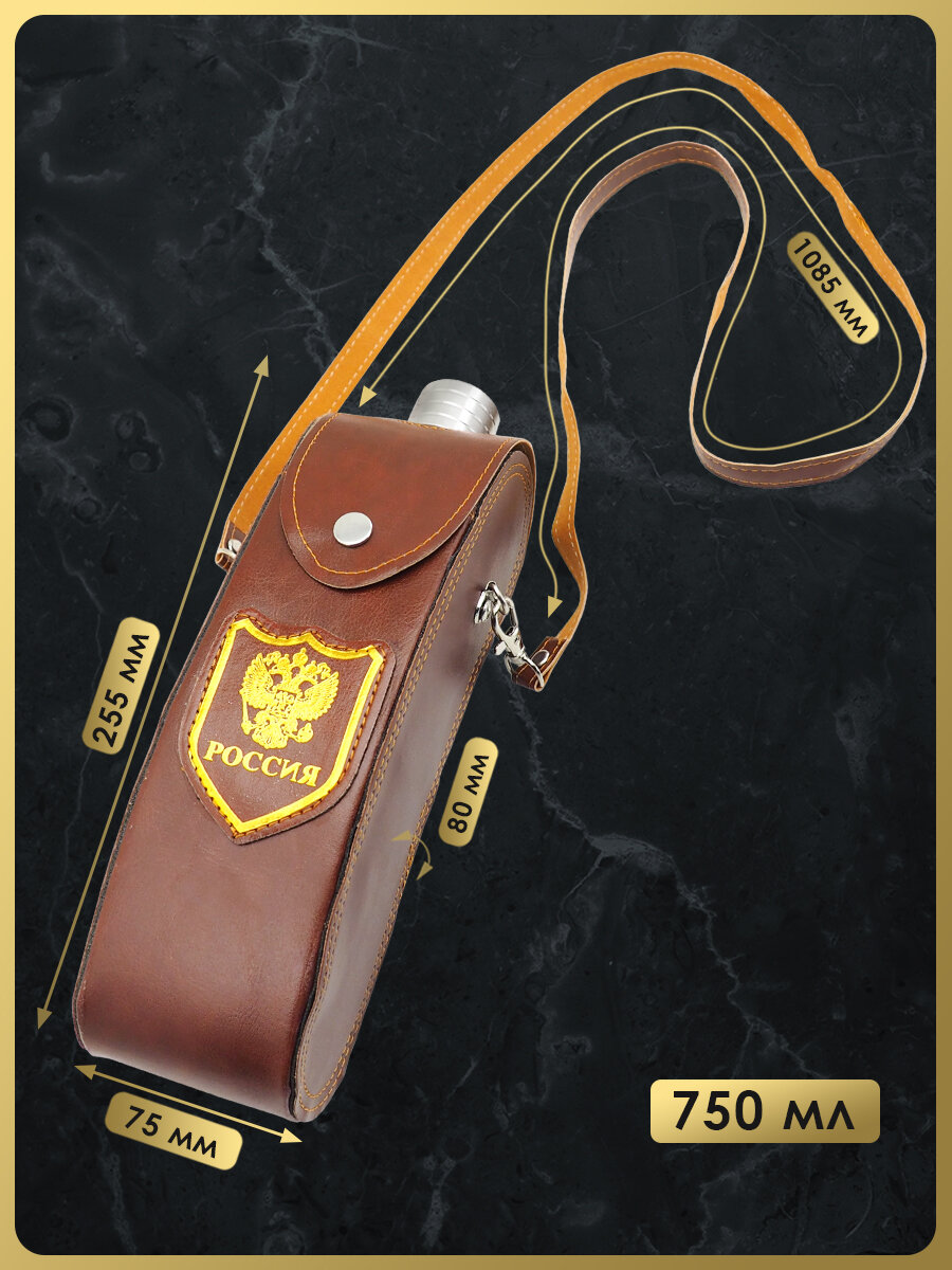 Фляга FL28-3K для спиртных напитков и воды, 770 мл, нержавеющая сталь, искуственная кожа, цвет коричневый интересное: