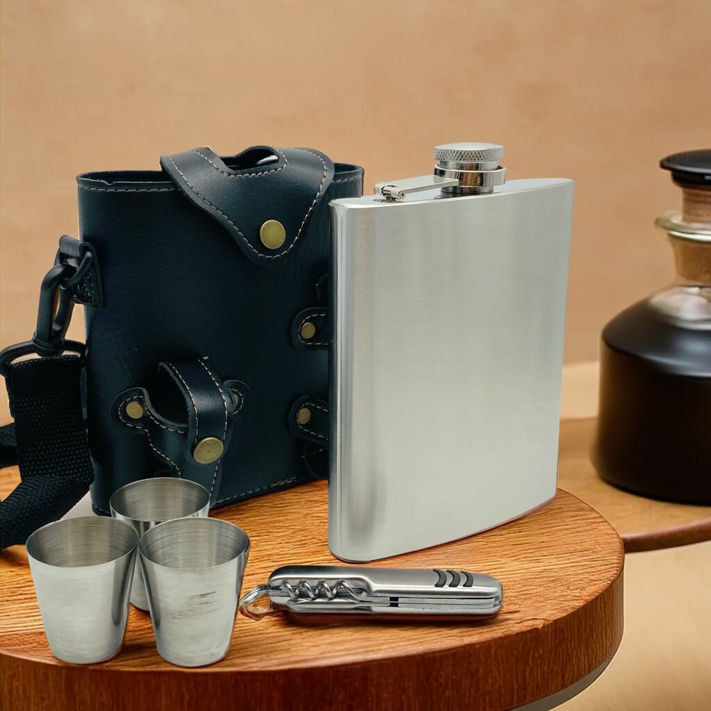 Купить Набор 3в1: фляга (0,5 л) в сумке + рюмки и швейцарский мультитул
