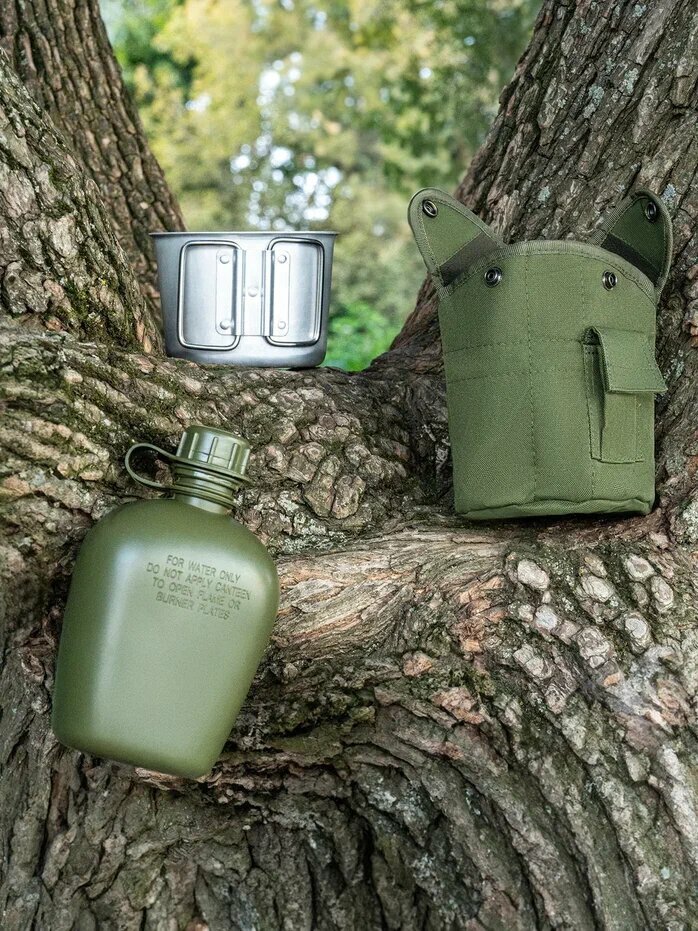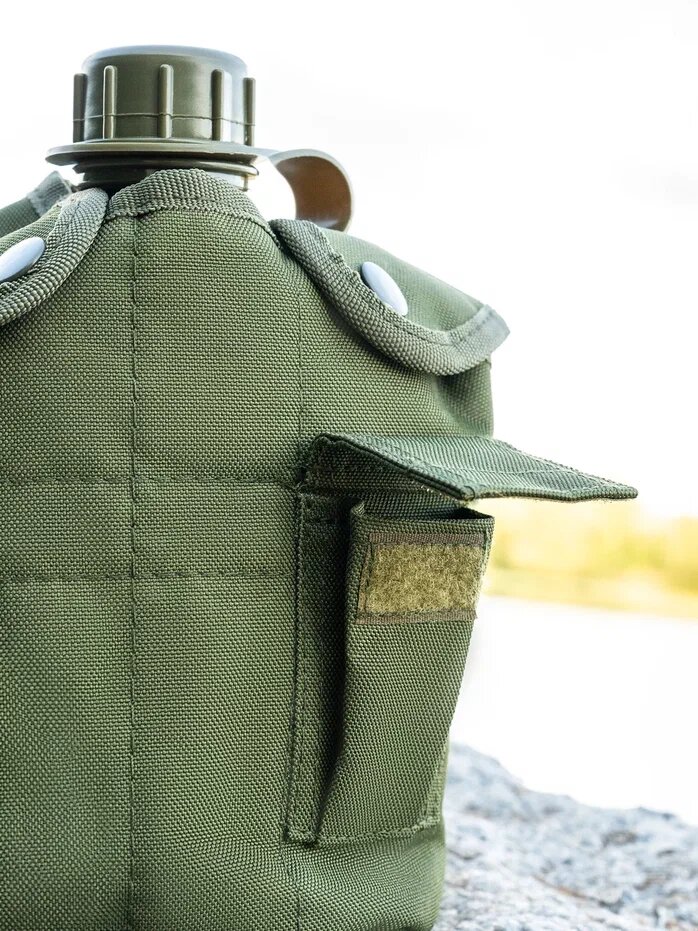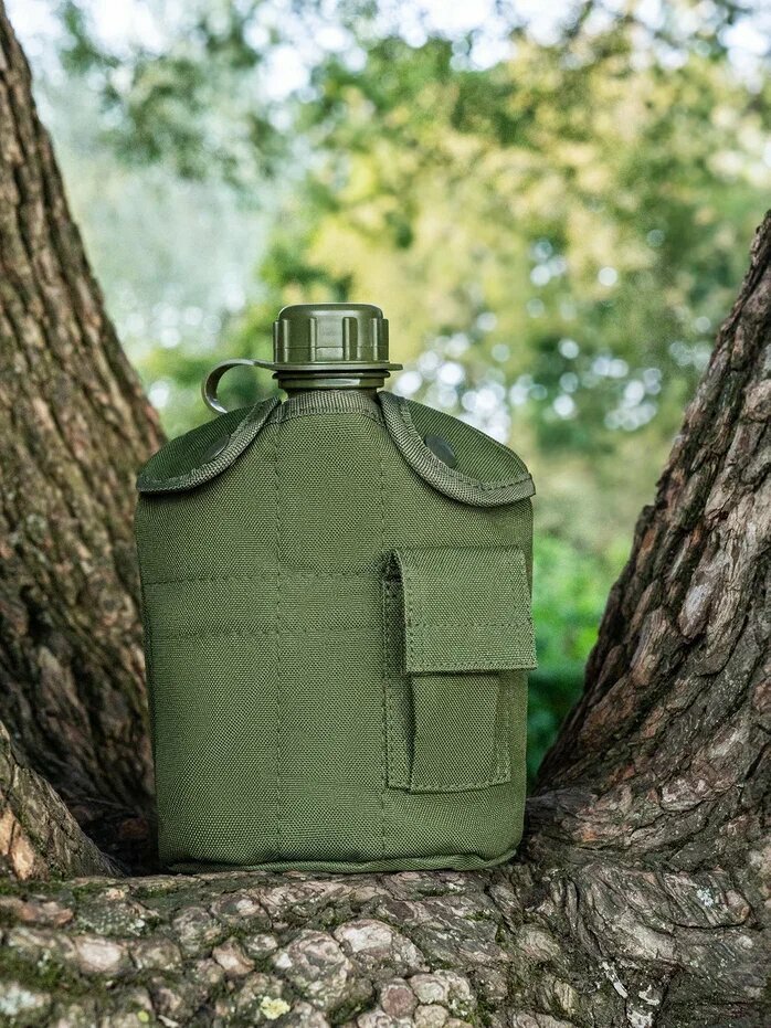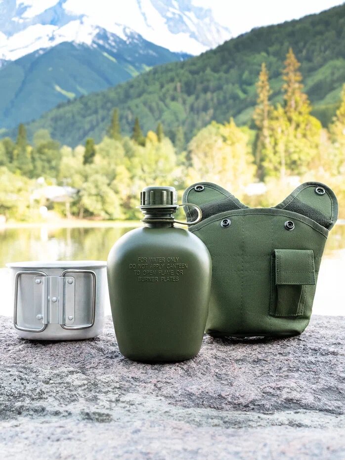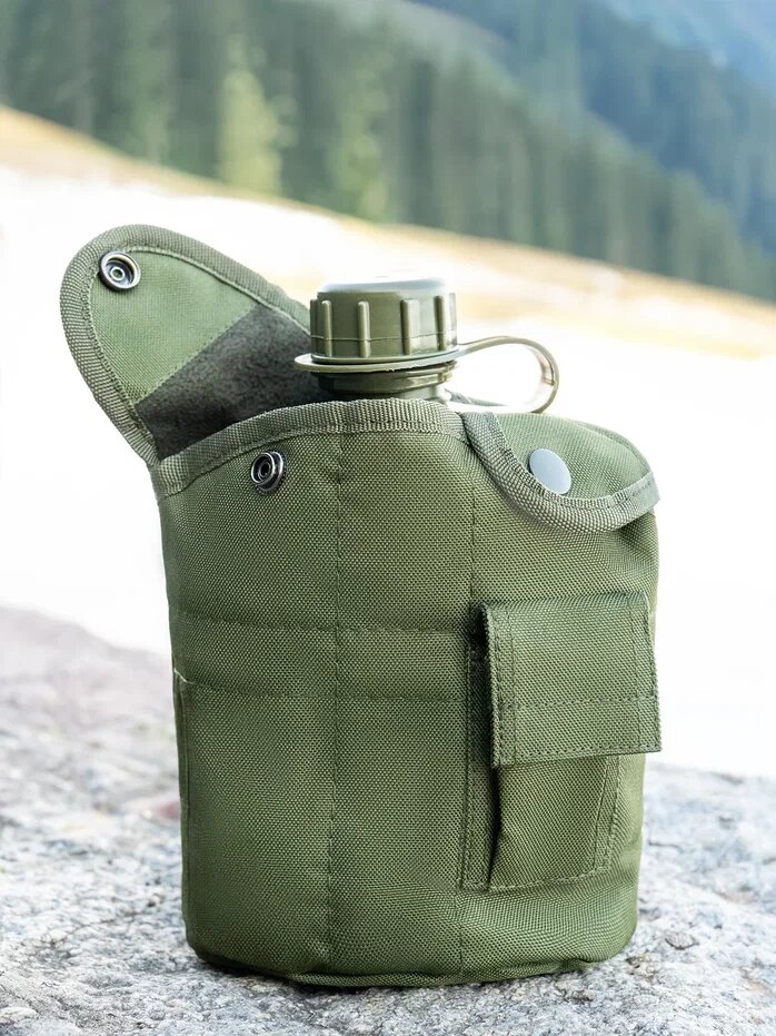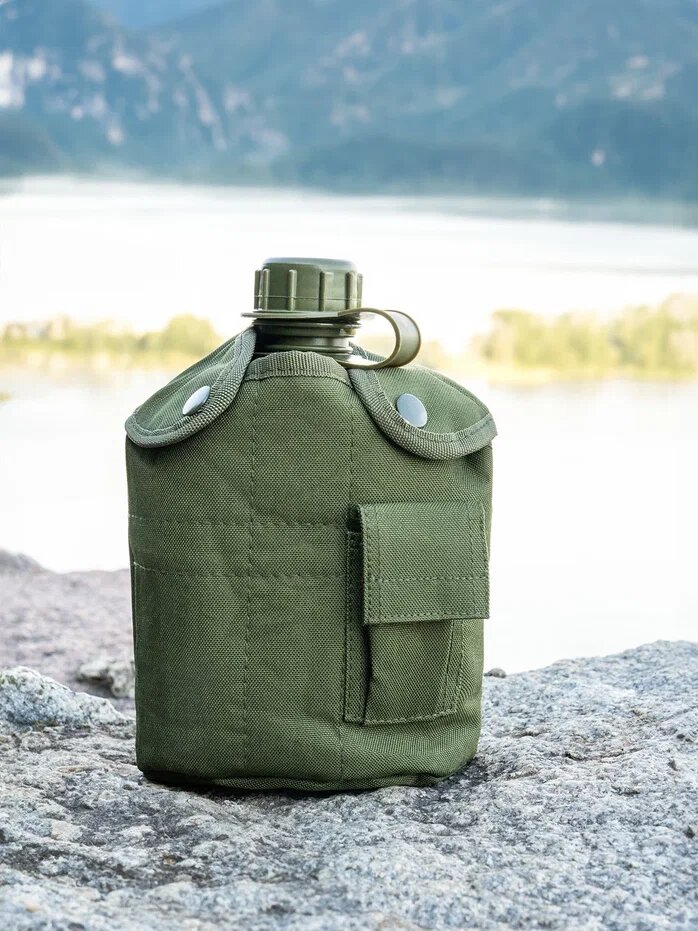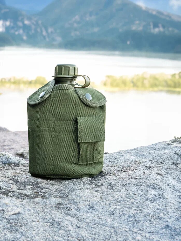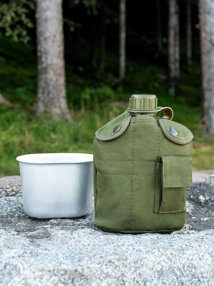 Купить Фляжка армейская для воды с котелком,1литр,зеленый. Походная фляга для еды для охоты, рыбалки, похода и тактических маршрутов