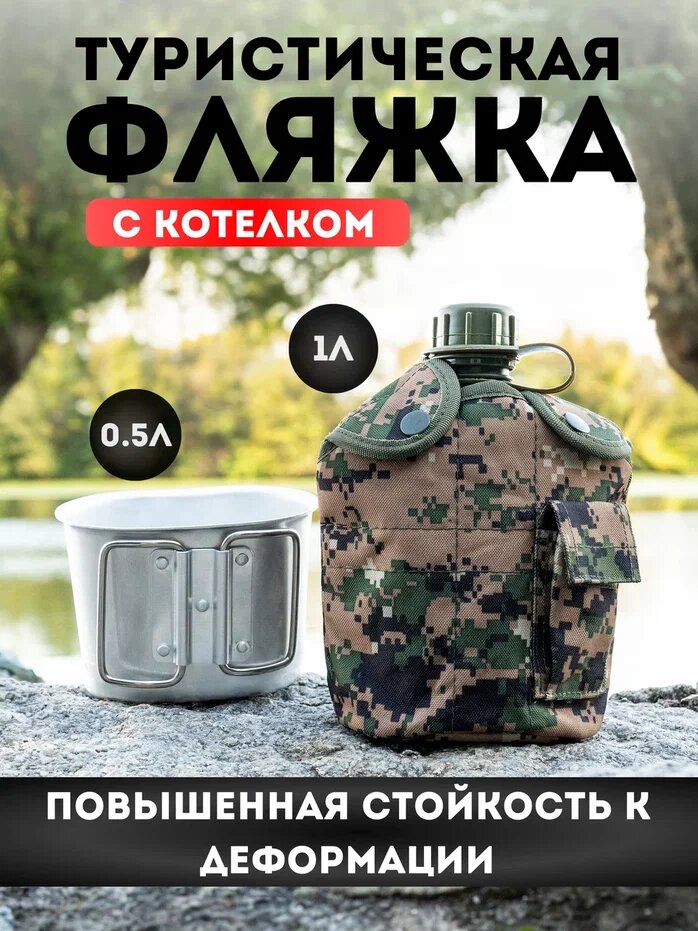 СохранитьФляжка армейская для воды с котелком, 1 литр, цифровой камуфляж . Походная фляга для еды для охоты, рыбалки, похода и тактических маршрутов интересное: