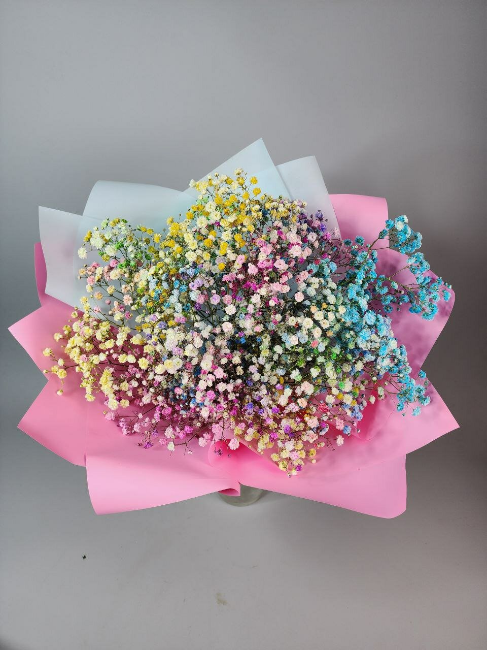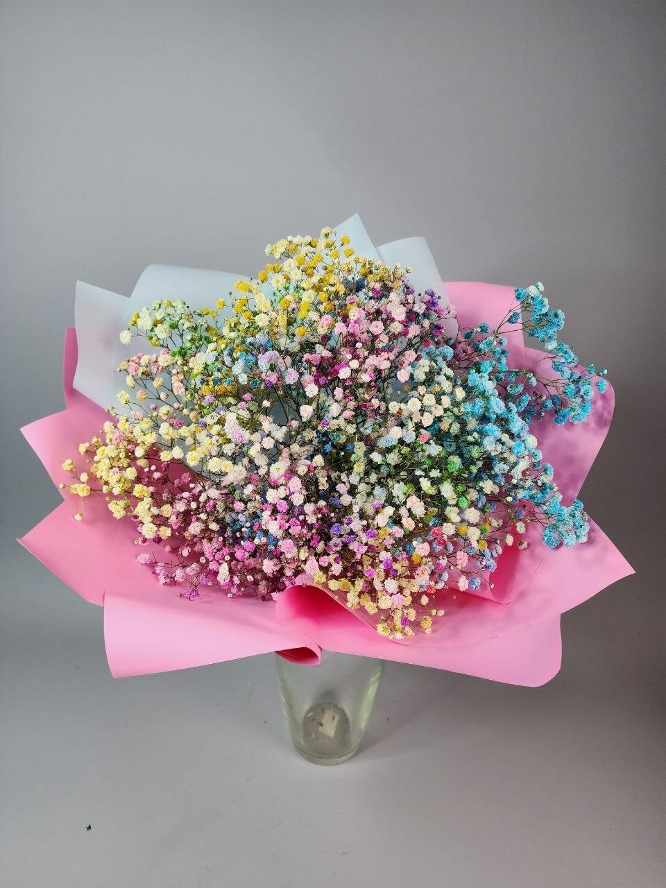 Букет из 15 радужных гипсофил в розовой упаковке