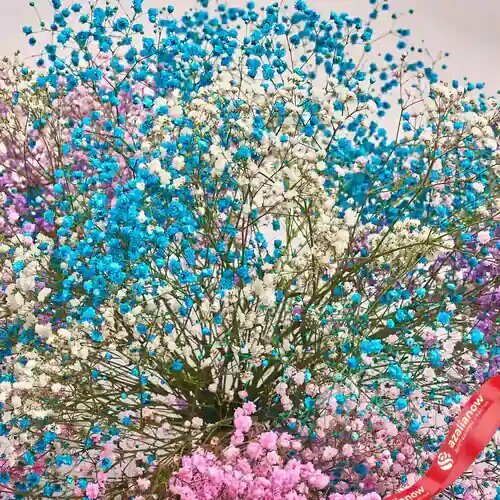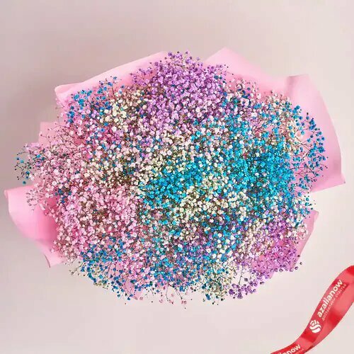 Букет из 15 радужных гипсофил в розовой упаковке интересное:
