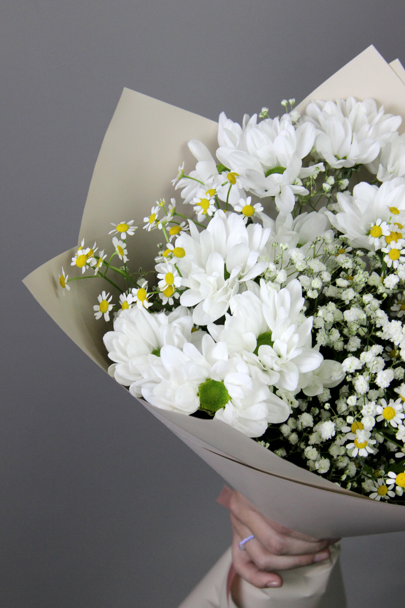 | Вид цветов | гипсофила / ромашка кустовая / хризантема |