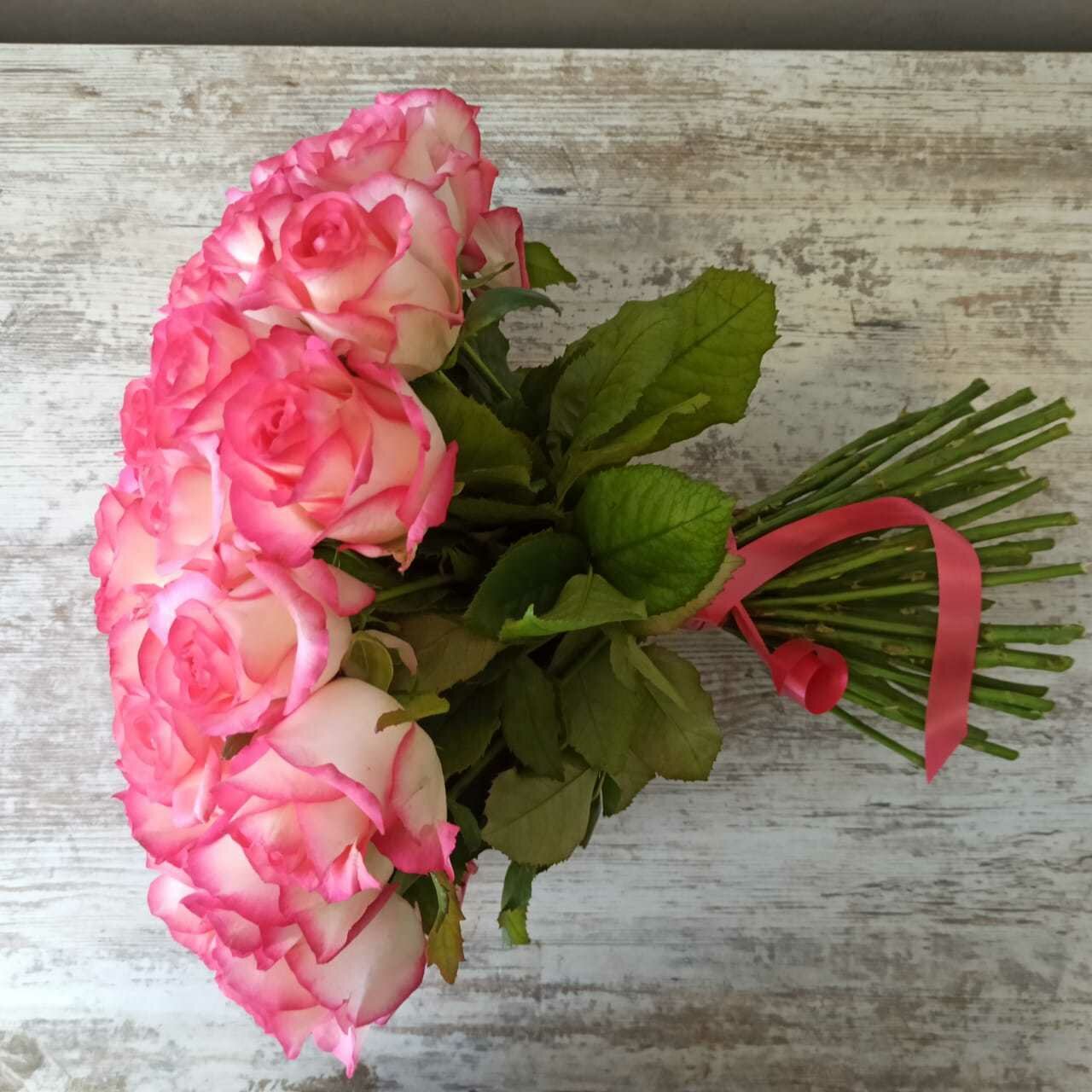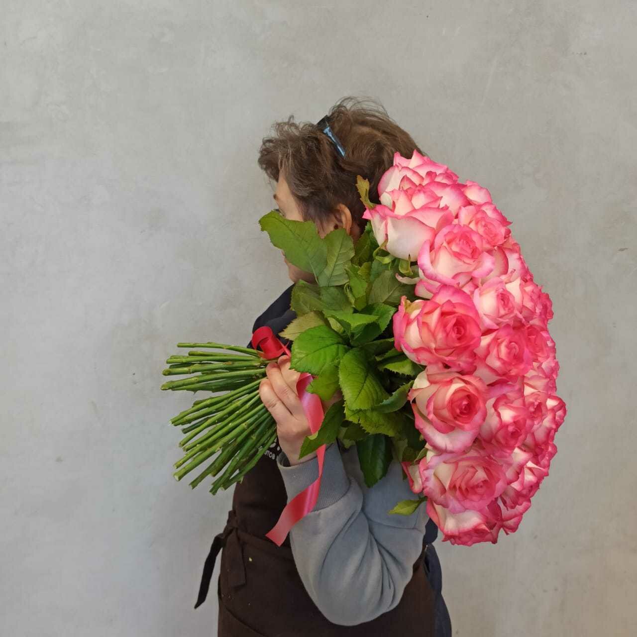 Купить Живые цветы букет роз 51 шт. 40 см. бело-розовый "С теплыми пожеланиями"