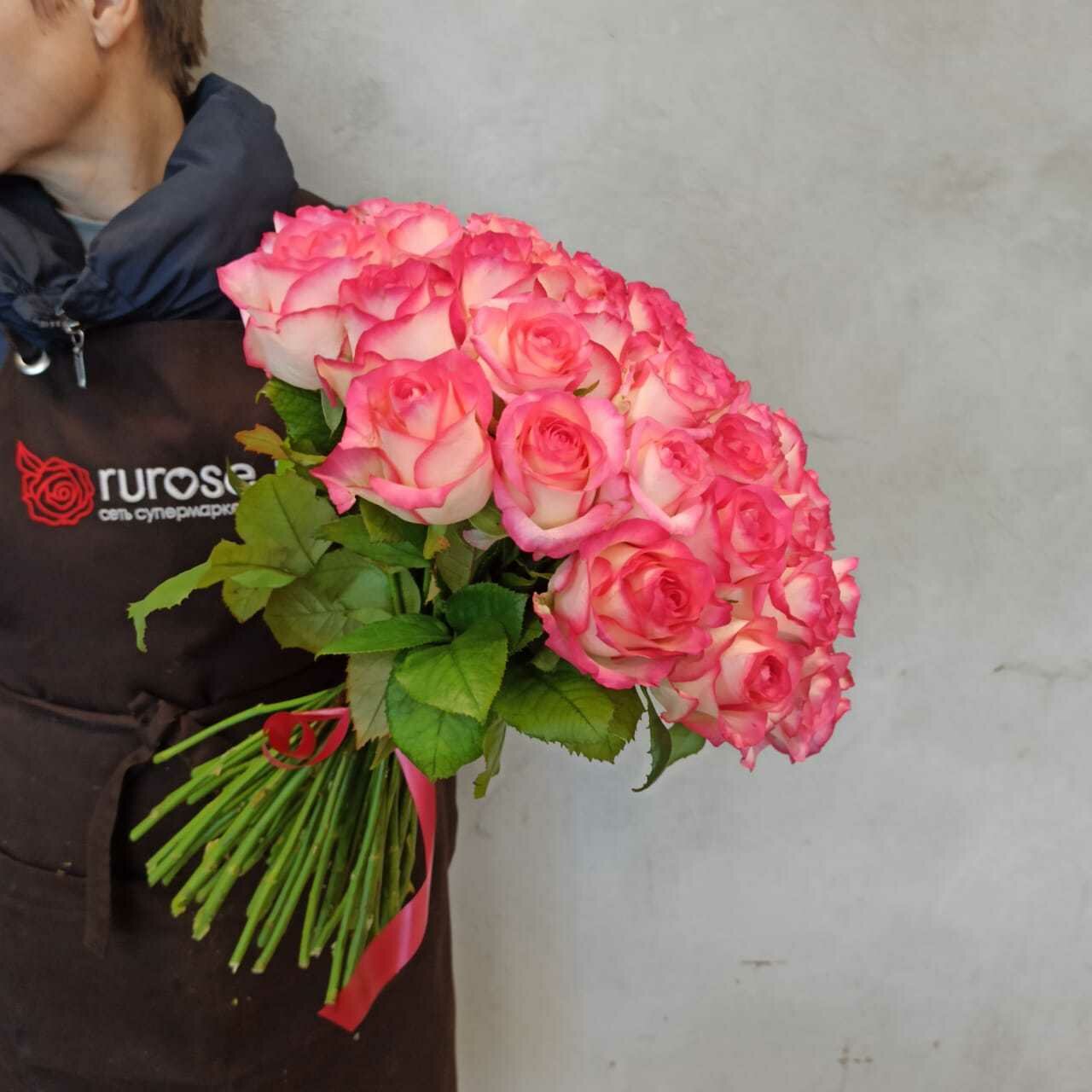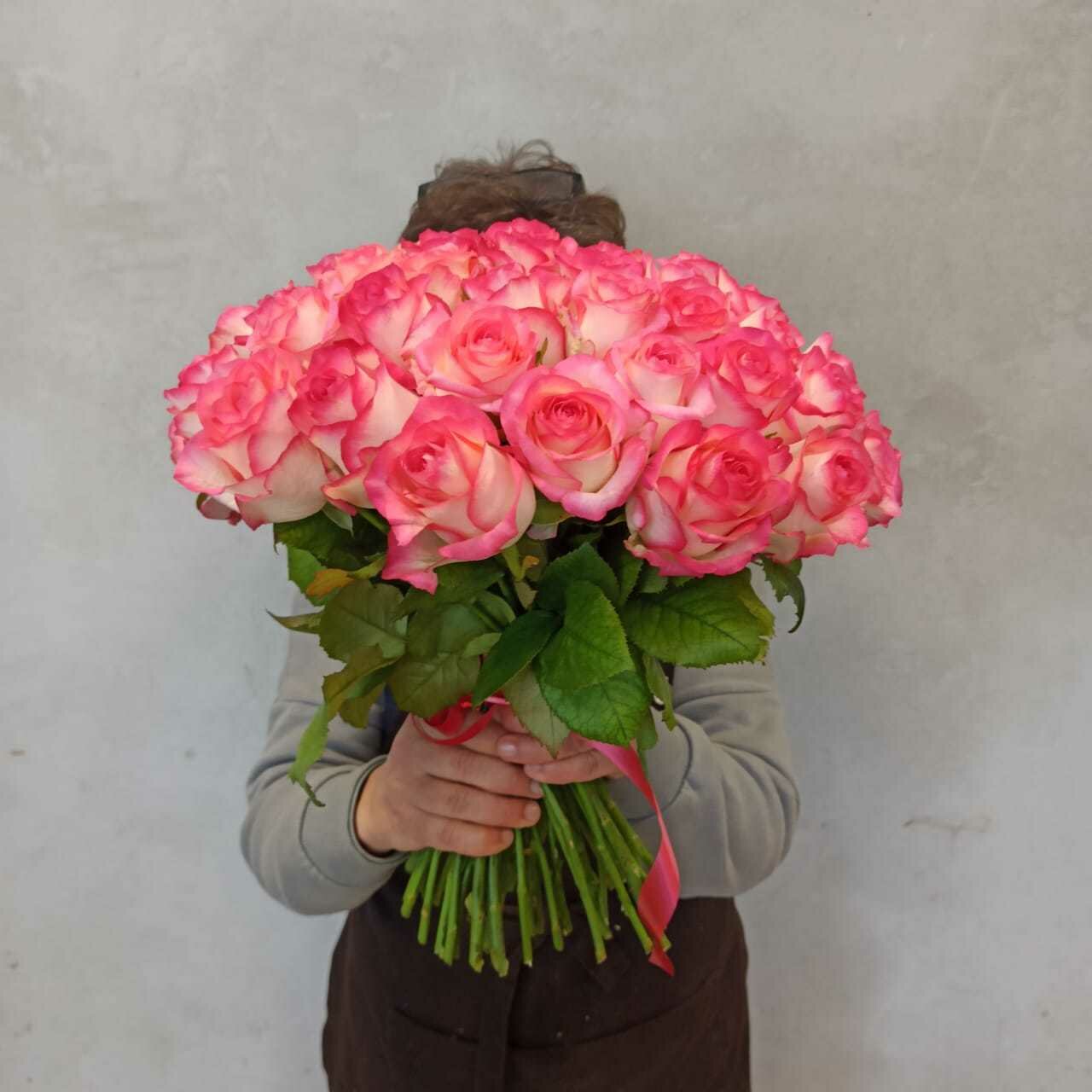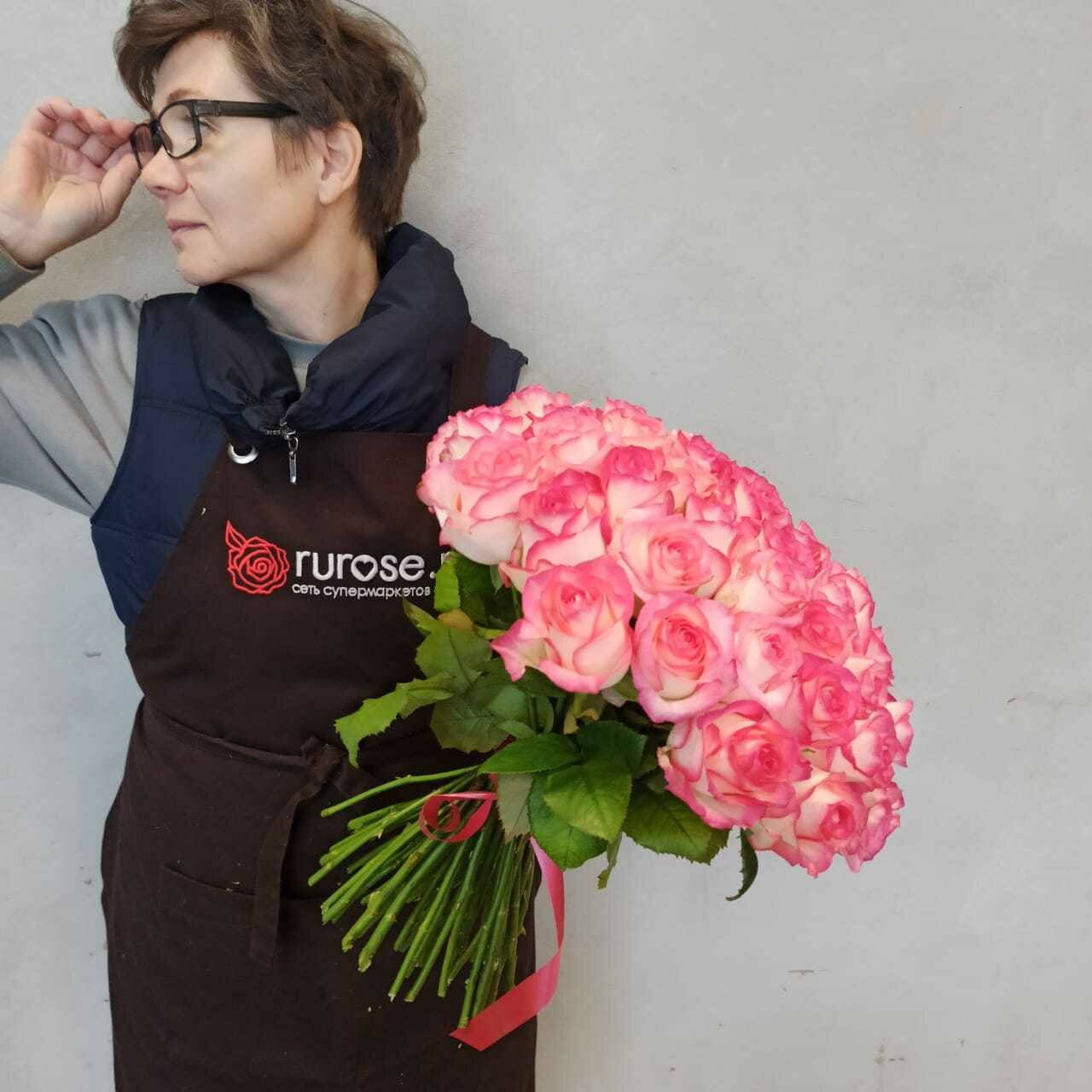 Живые цветы букет роз 51 шт. 40 см. бело-розовый "С теплыми пожеланиями", Rurose