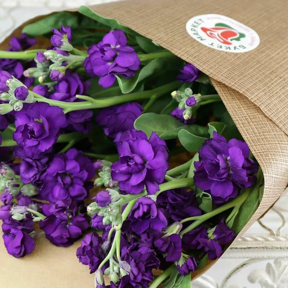 Купить Букет живых цветов из темно-фиолетовой маттиолы 55см