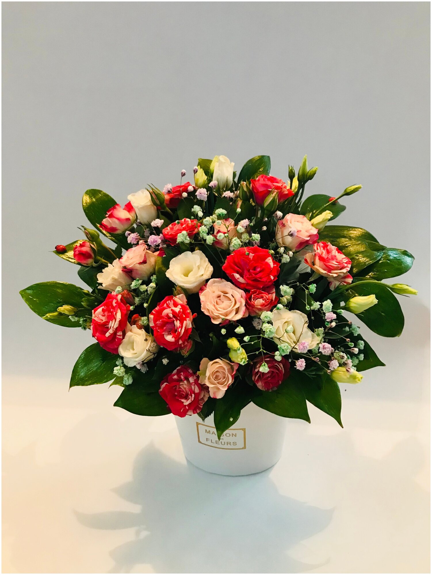 Купить Букет Композиция из кустовых роз Фейерверк в коробке Мейсон-белая