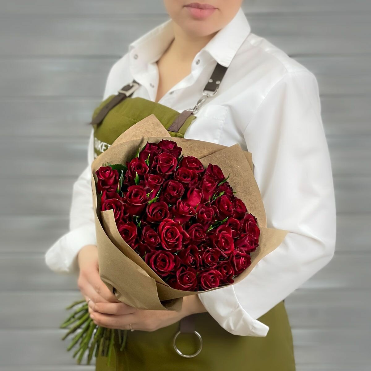 Купить Букет живых цветов из 35 красных роз 40см в крафте