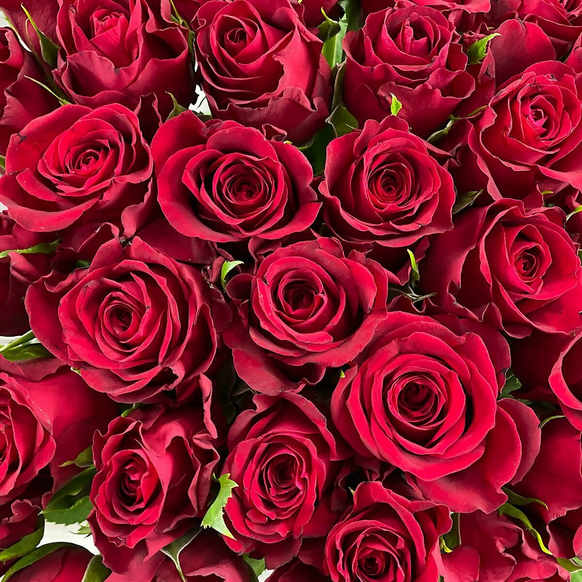 Букет живых цветов из 35 красных кенийских роз 40см