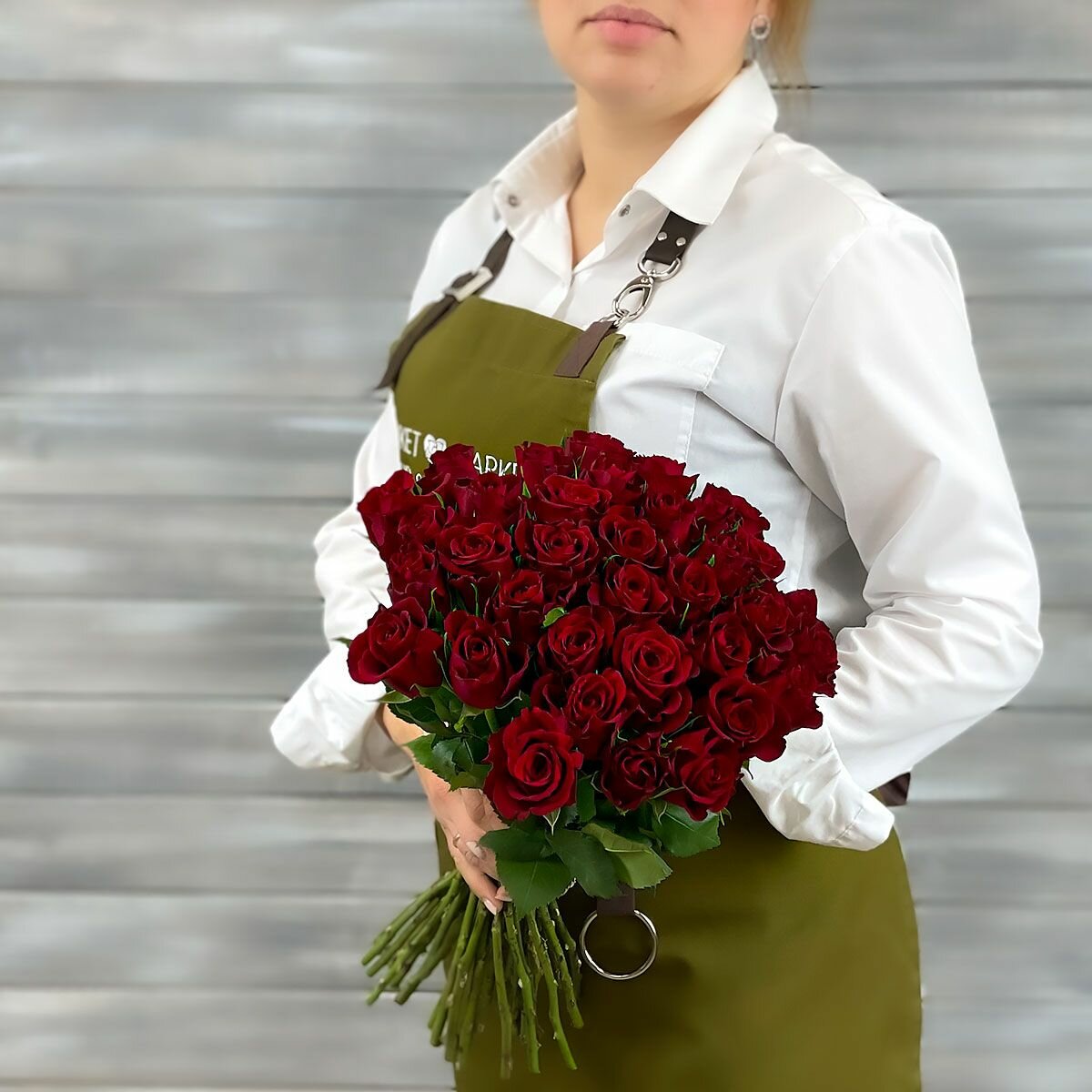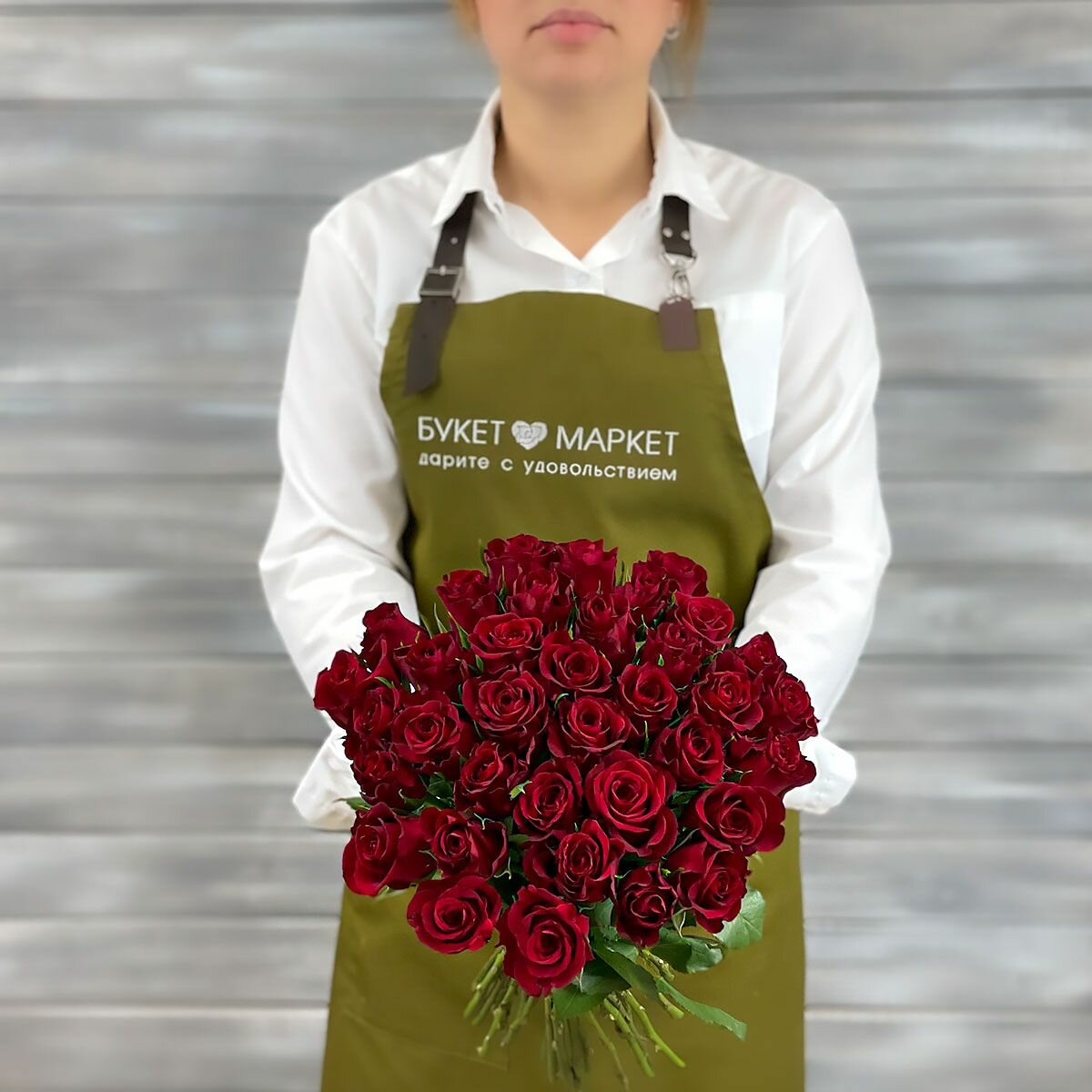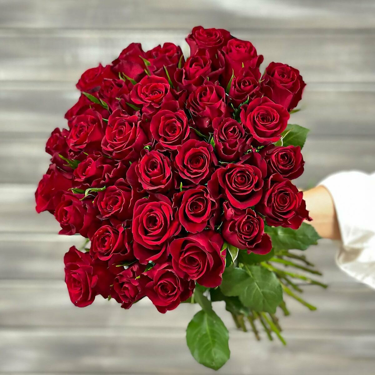 Букет живых цветов из 51 красная роза40см