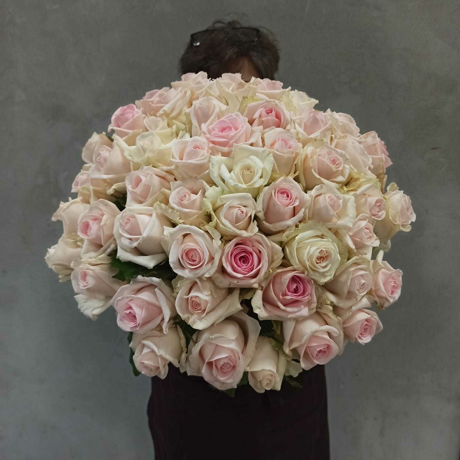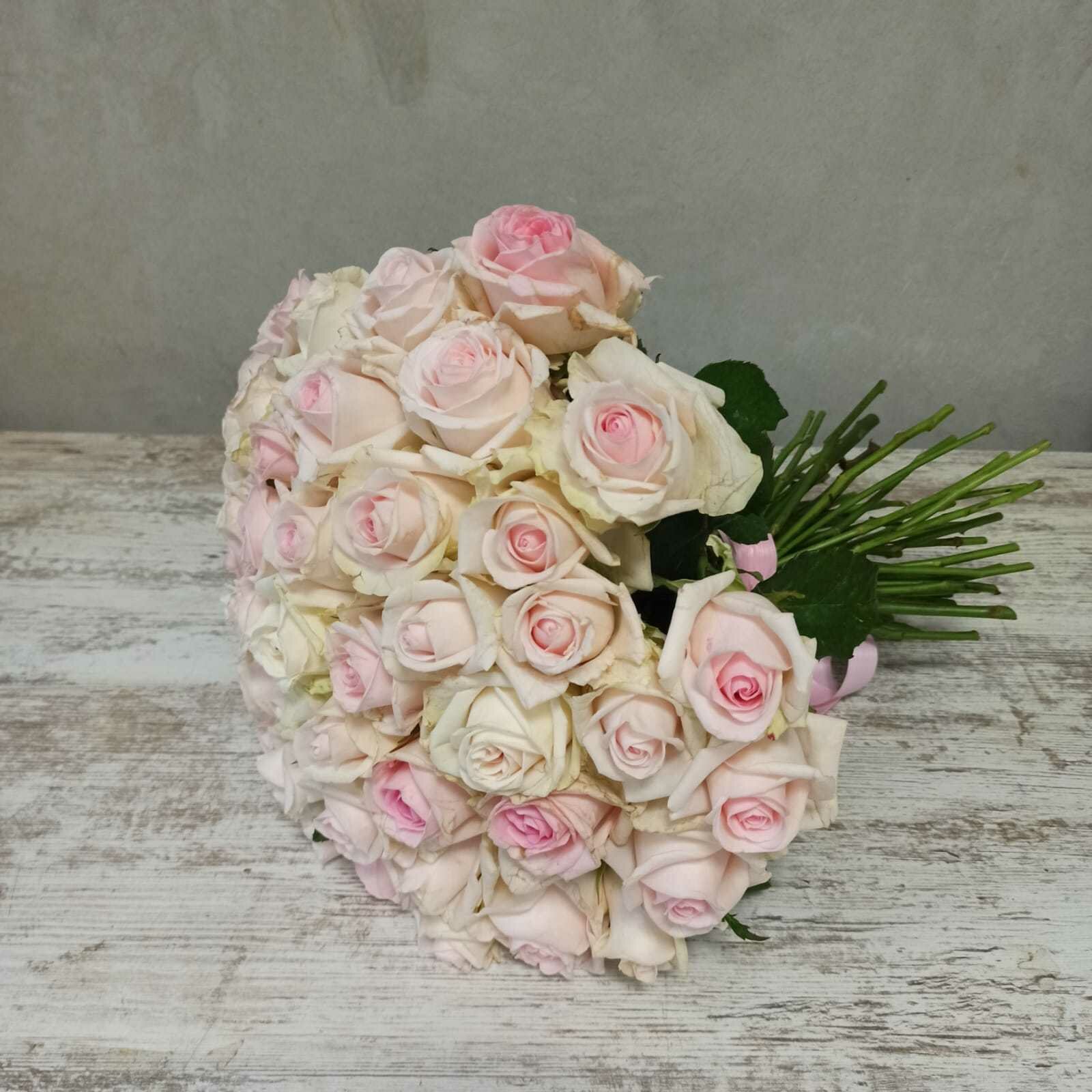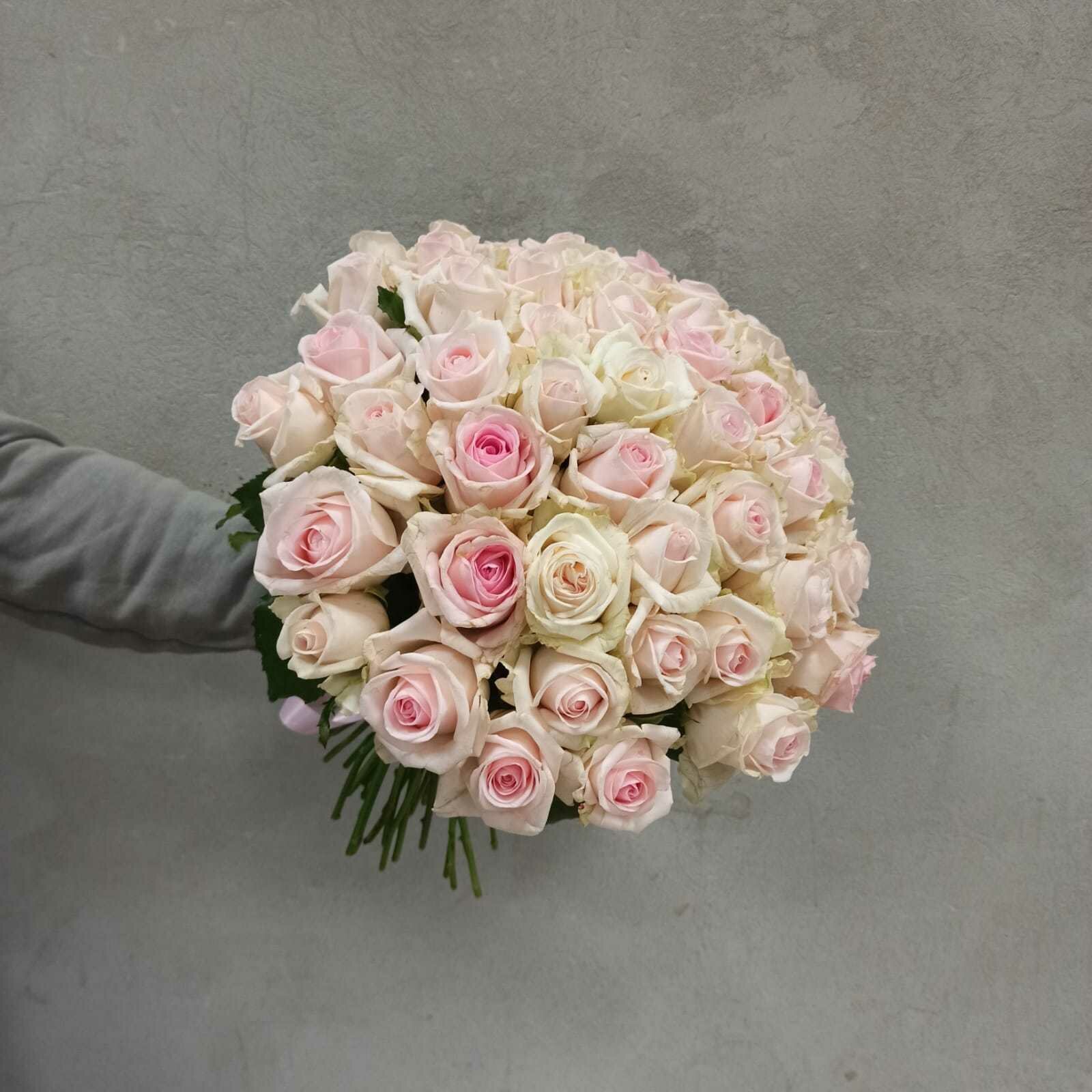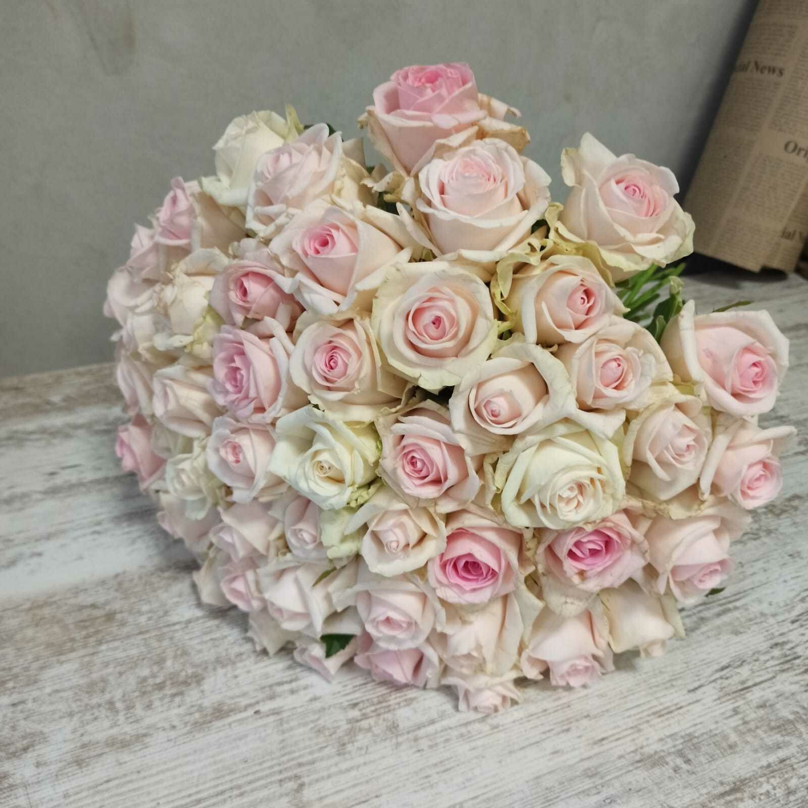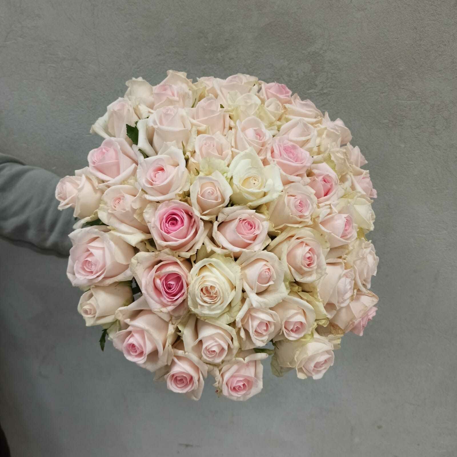 Купить Живые цветы букет роз 51 шт. 40 см. нежно-розовый "Праздник"