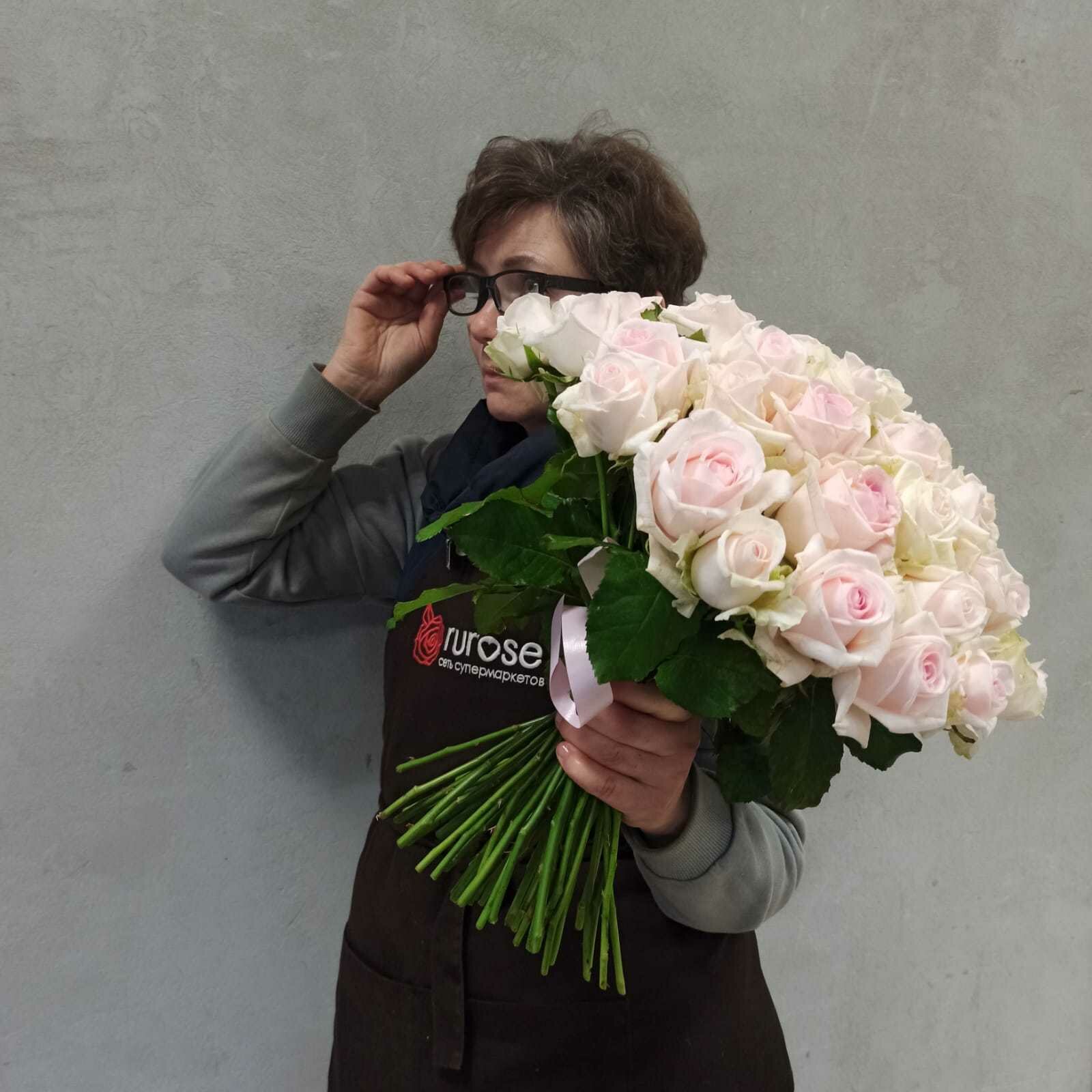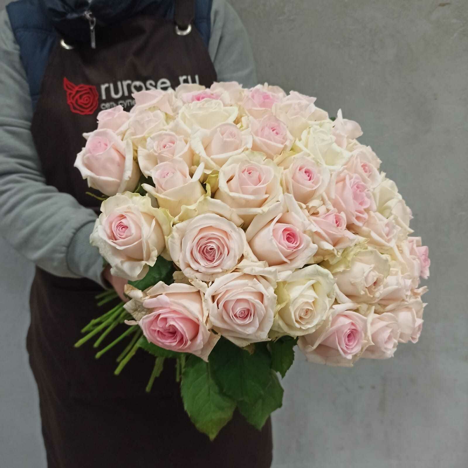 Живые цветы букет роз 51 шт. 40 см. нежно-розовый "Праздник" интересное: