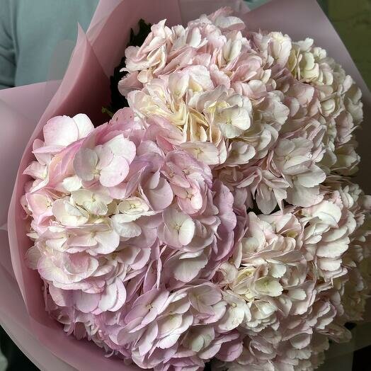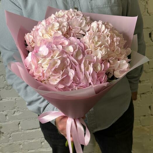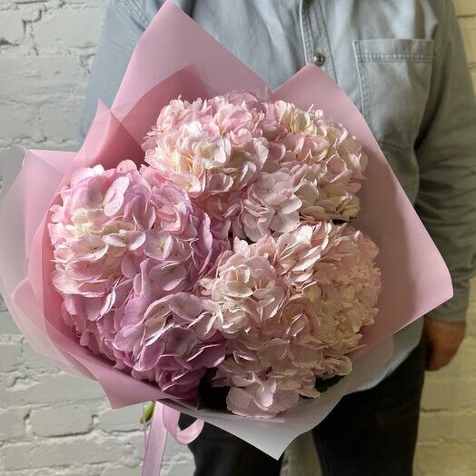 Букет розовых гортензий в дизайнерской упаковке 127 интересное: