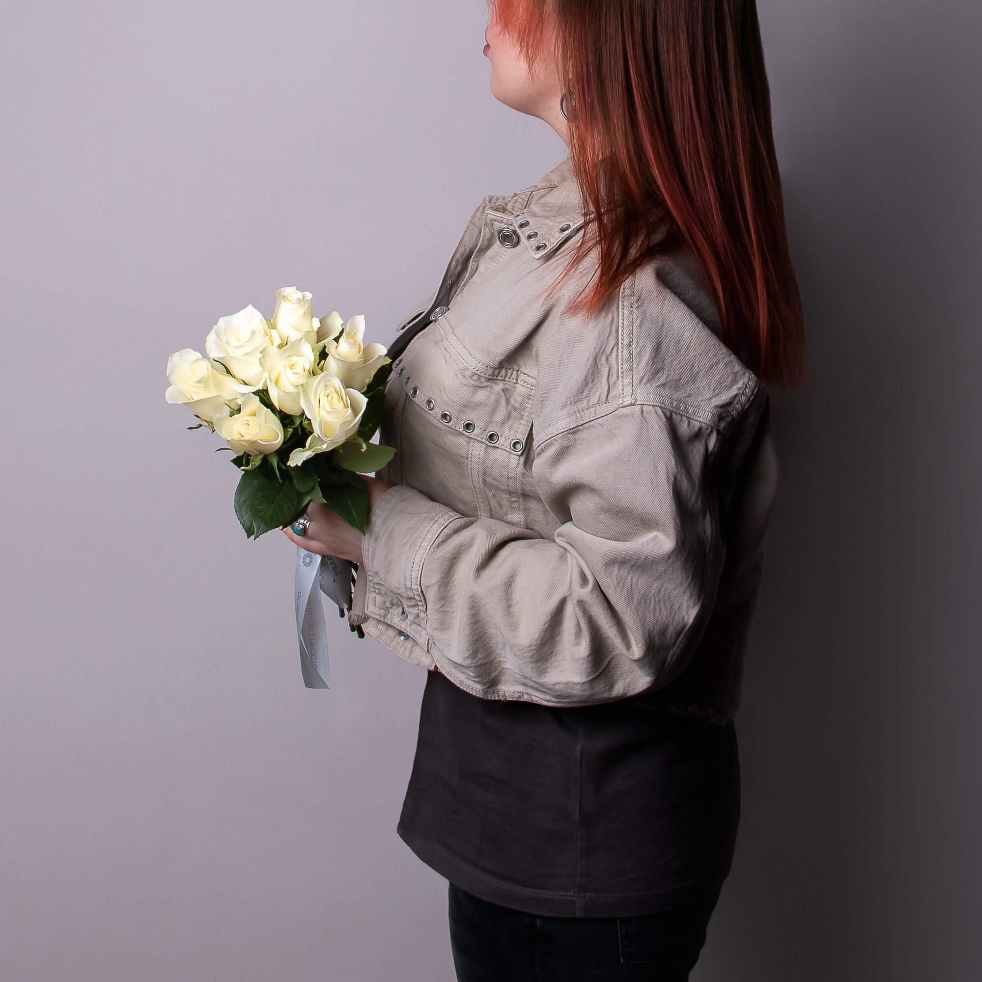 Розы в крафт коробке 11 шт 50 см белые - Просто роза ру