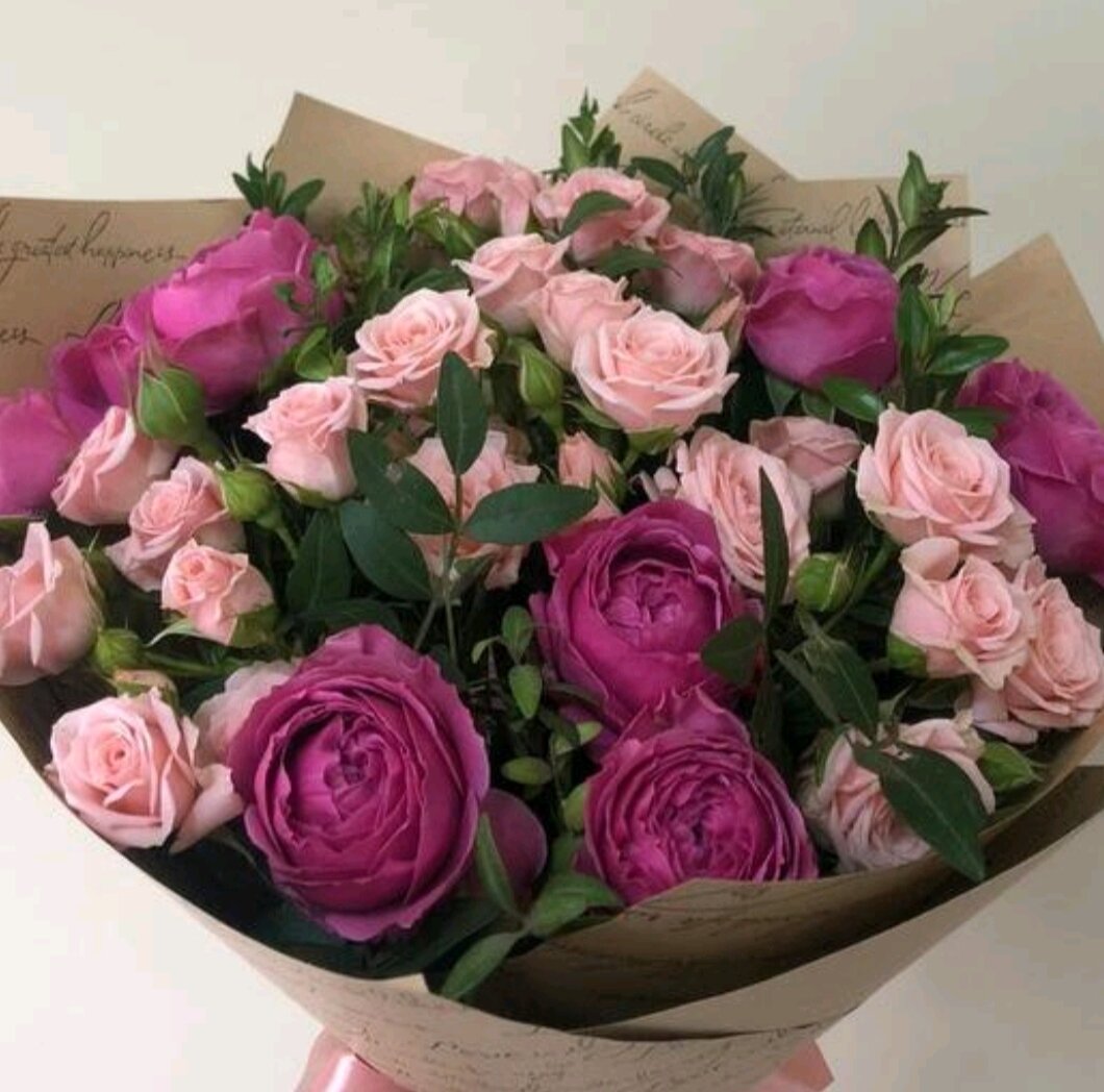 Букет из пионовидных и кустовых роз интересное: