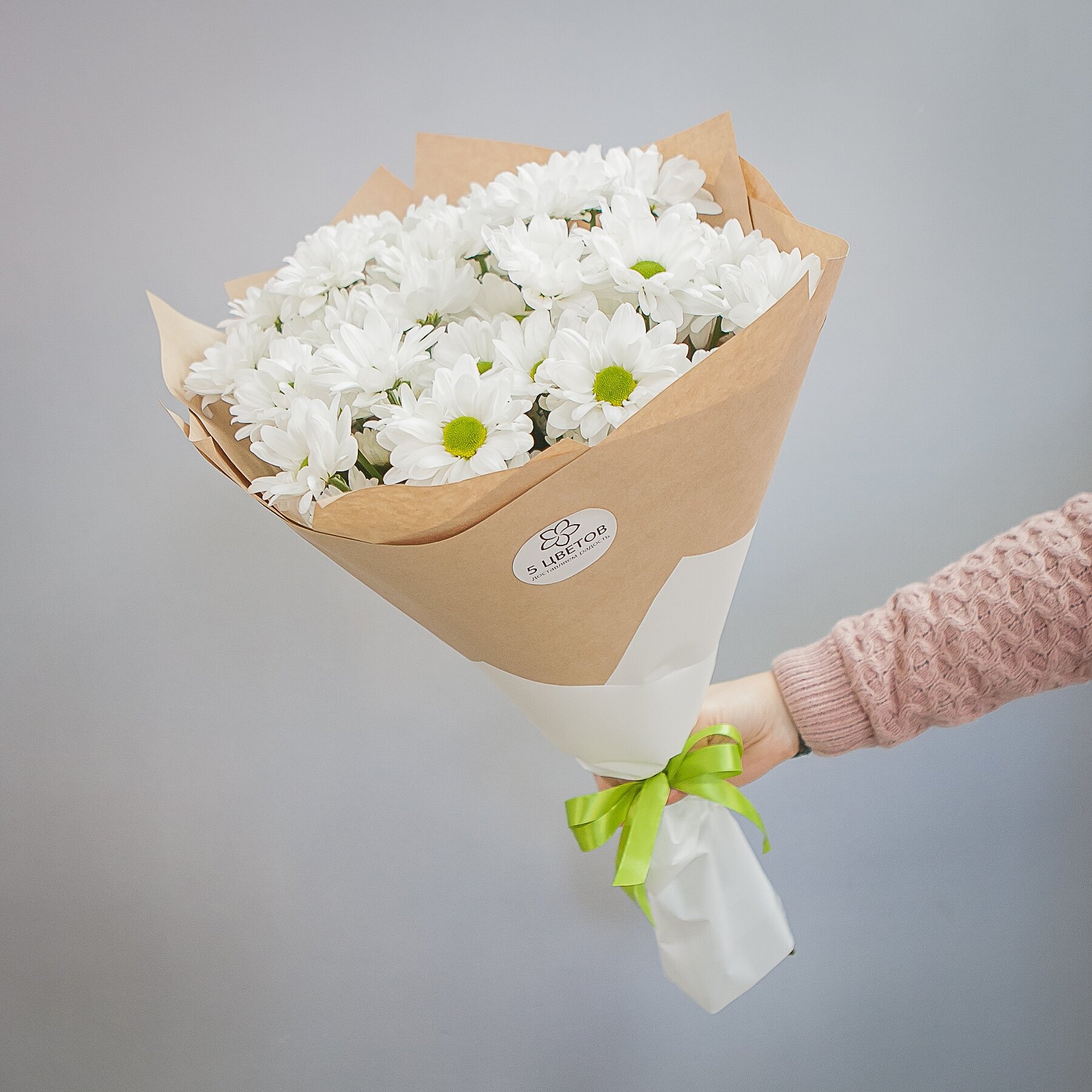 Купить Букет из 9 кустовых хризантем в крафте