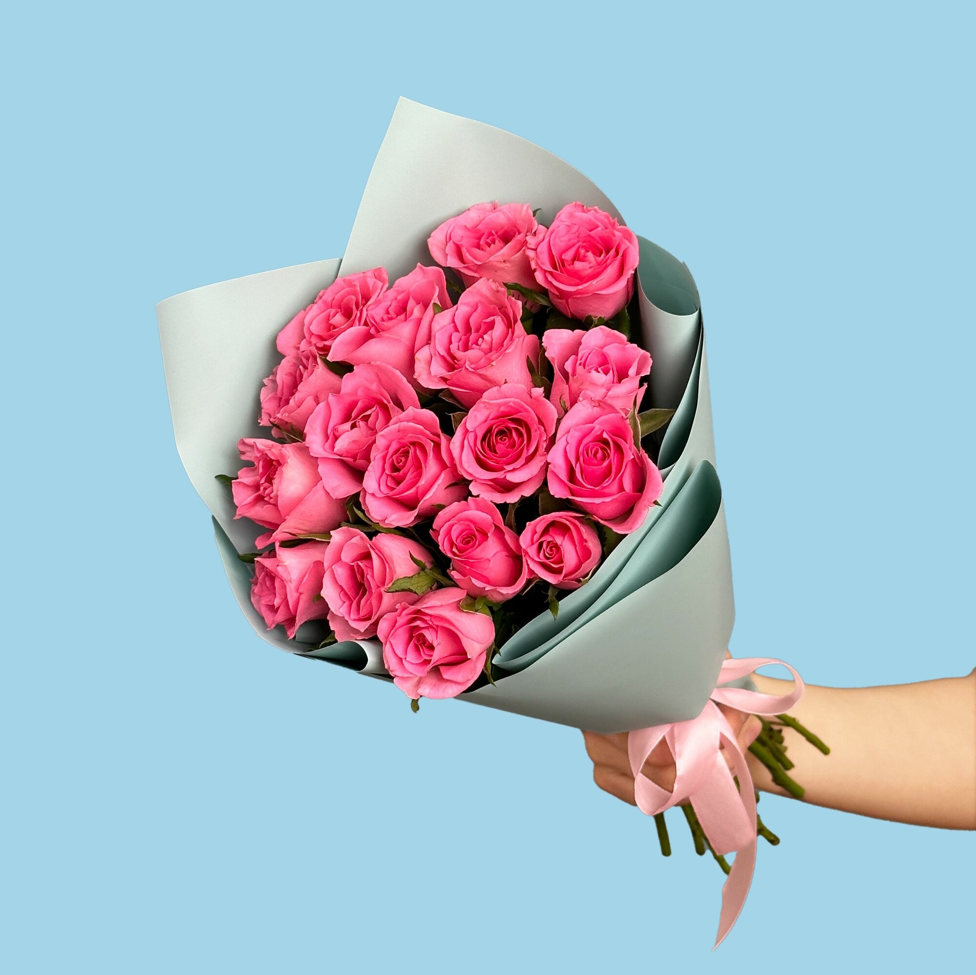 Купить Цветы живые букет из 15 розовых роз 40 см в упаковке Flor2u
