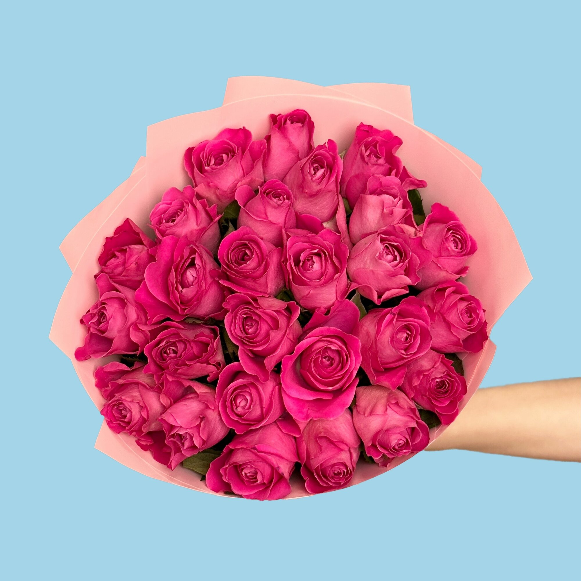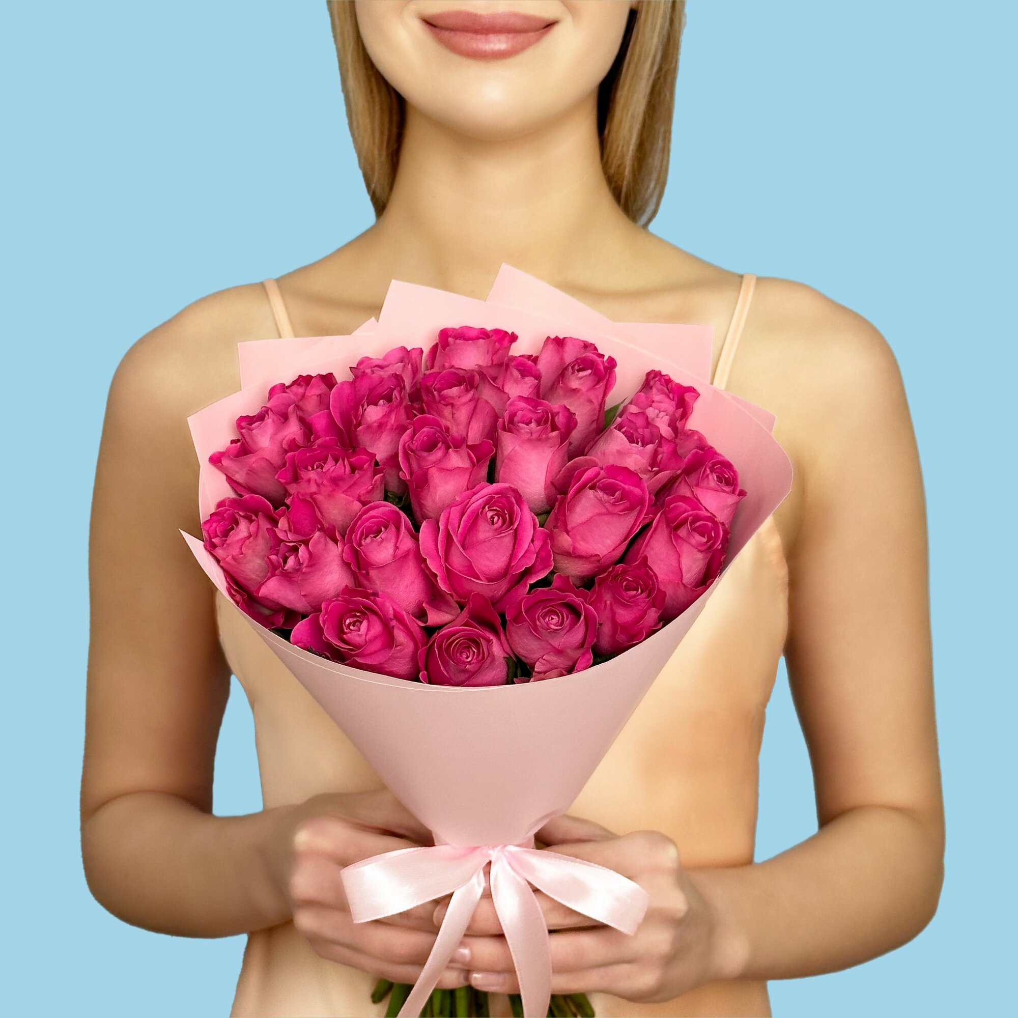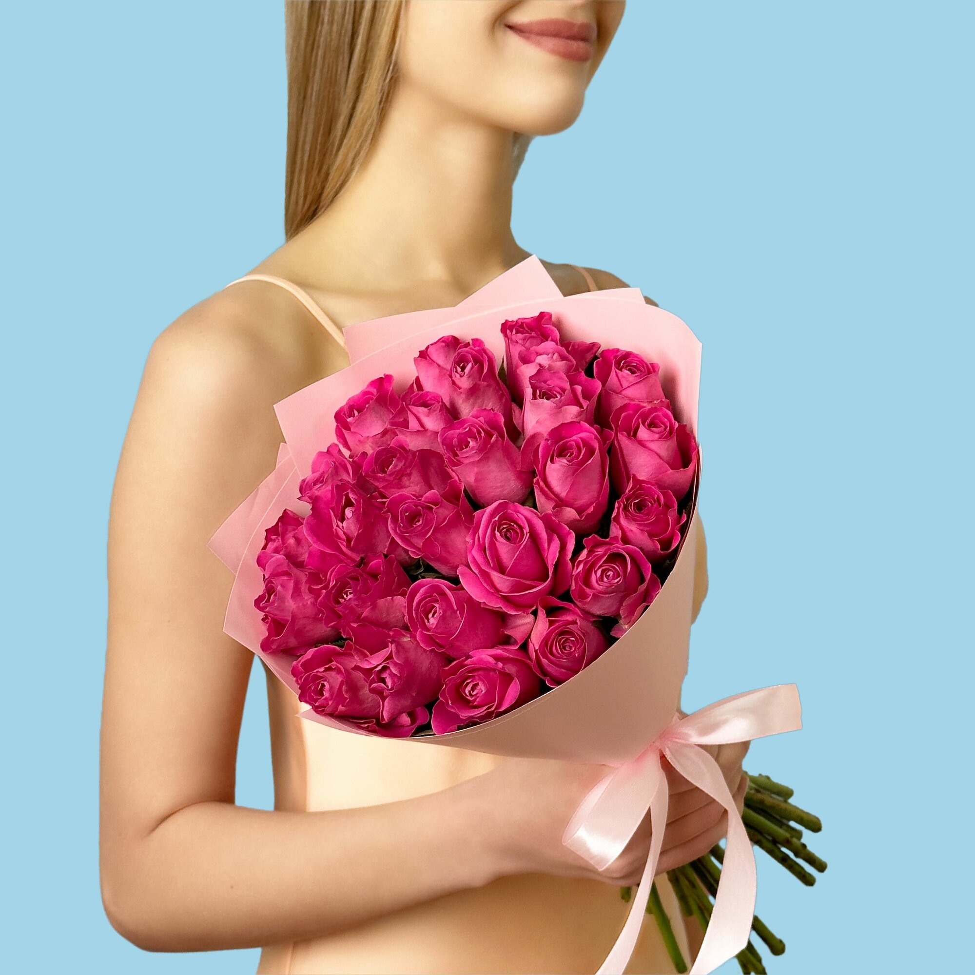 Купить Цветы живые букет из 25 розовых роз 40 см в упаковке Flor2u