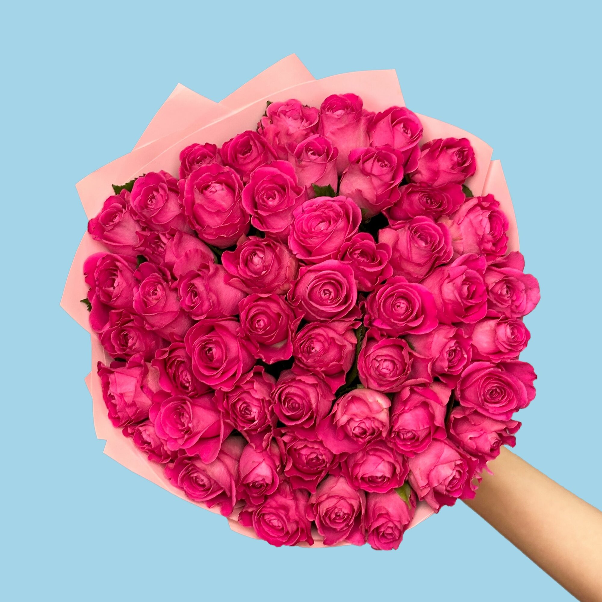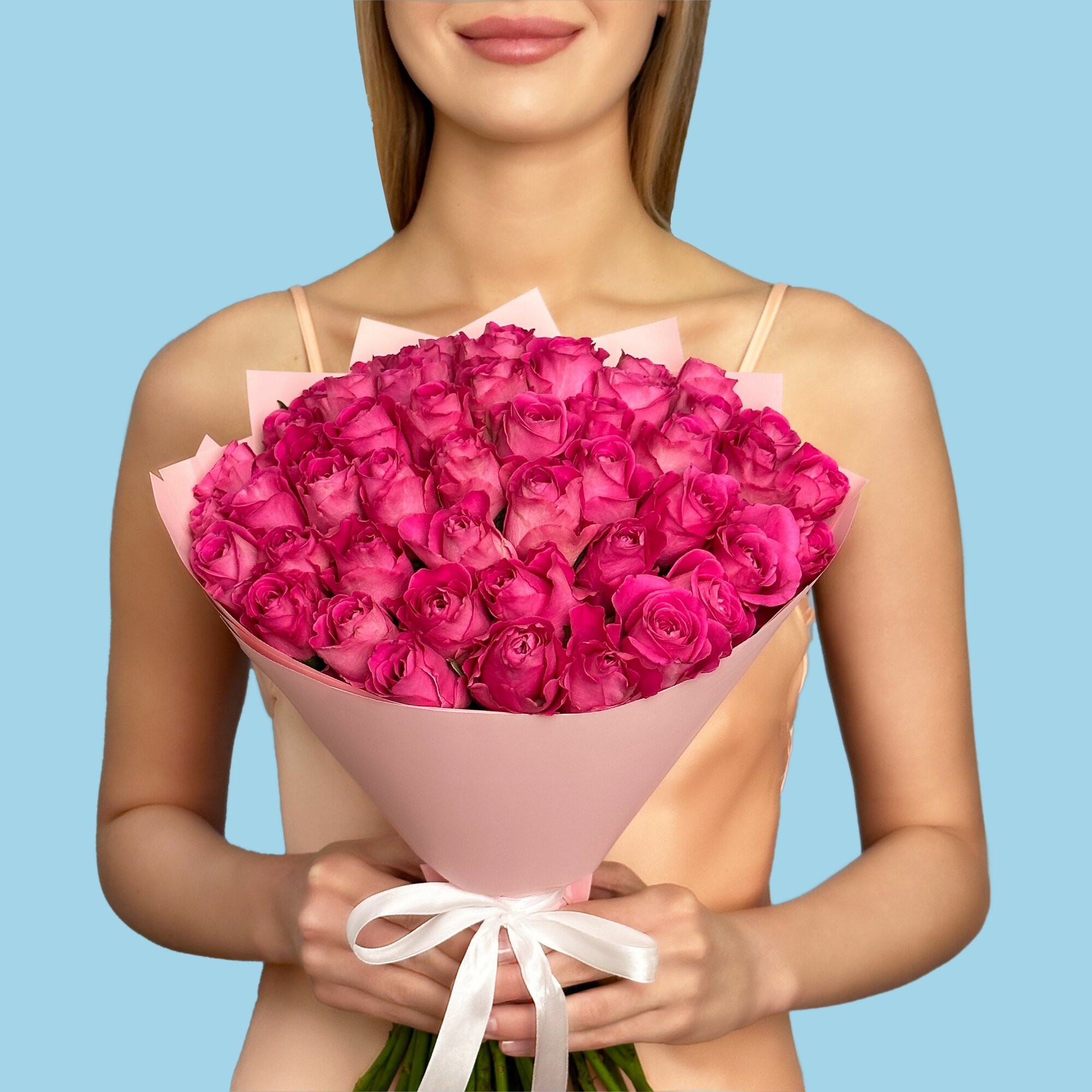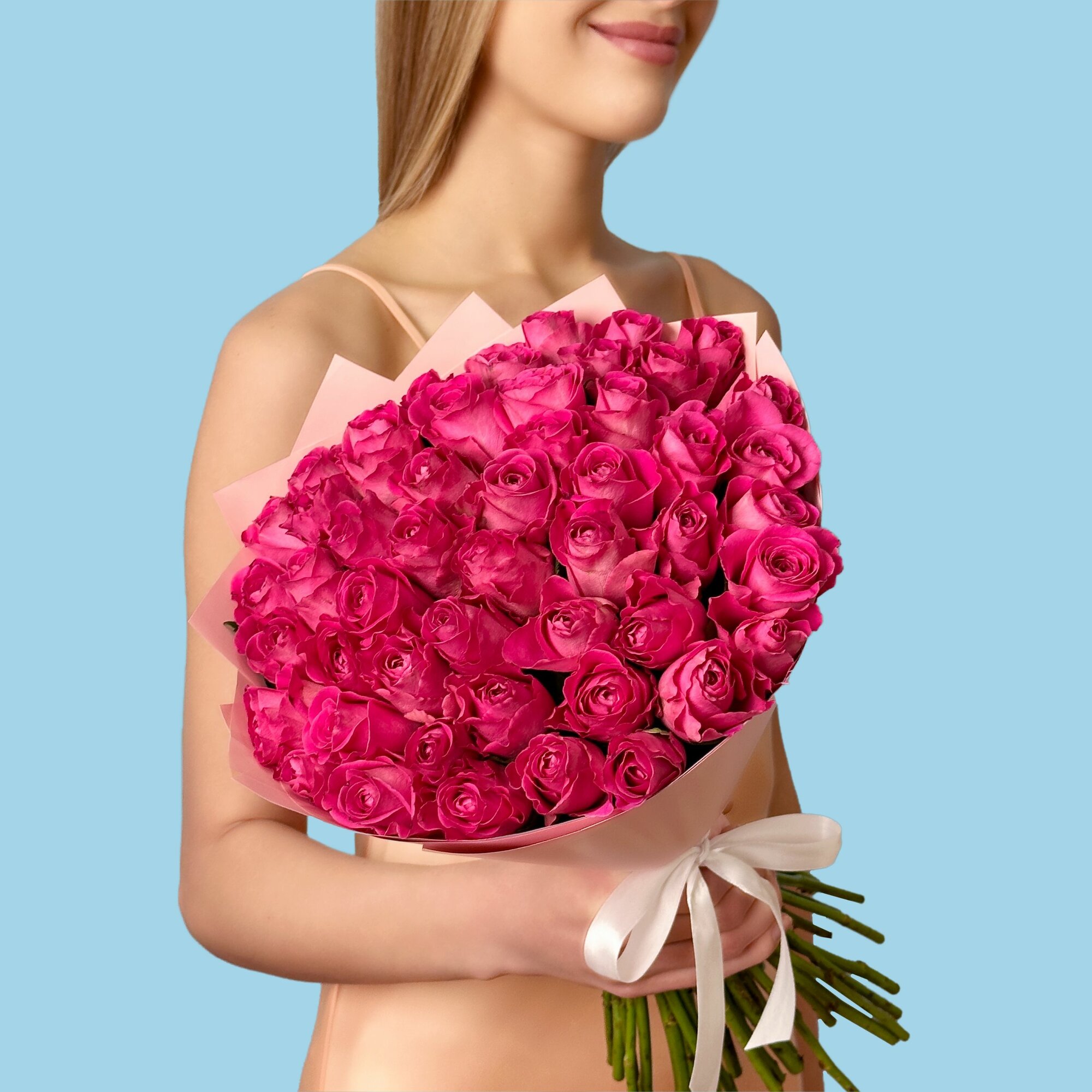 Купить Цветы живые букет из 51 розовой розы 40 см в упаковке Flor2u