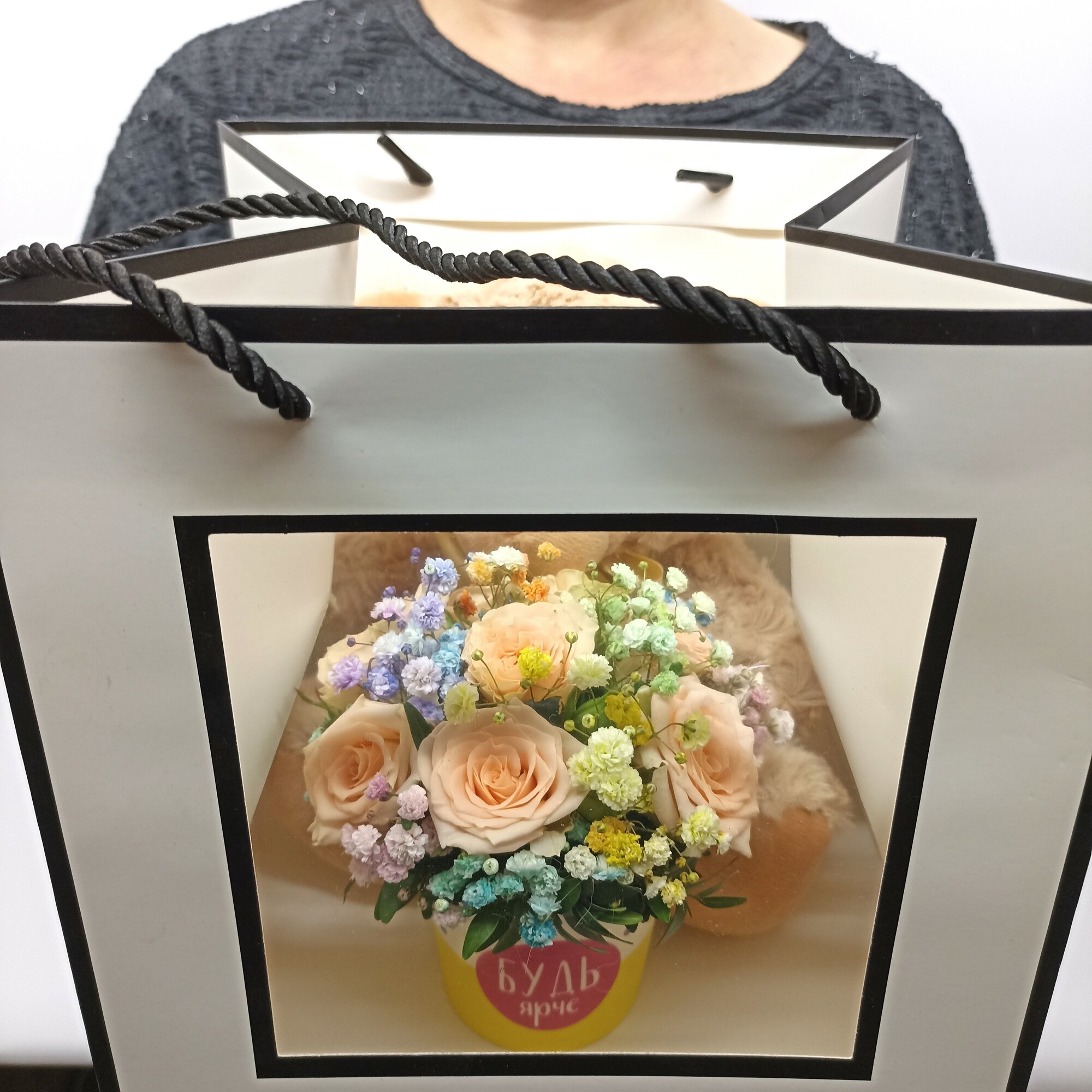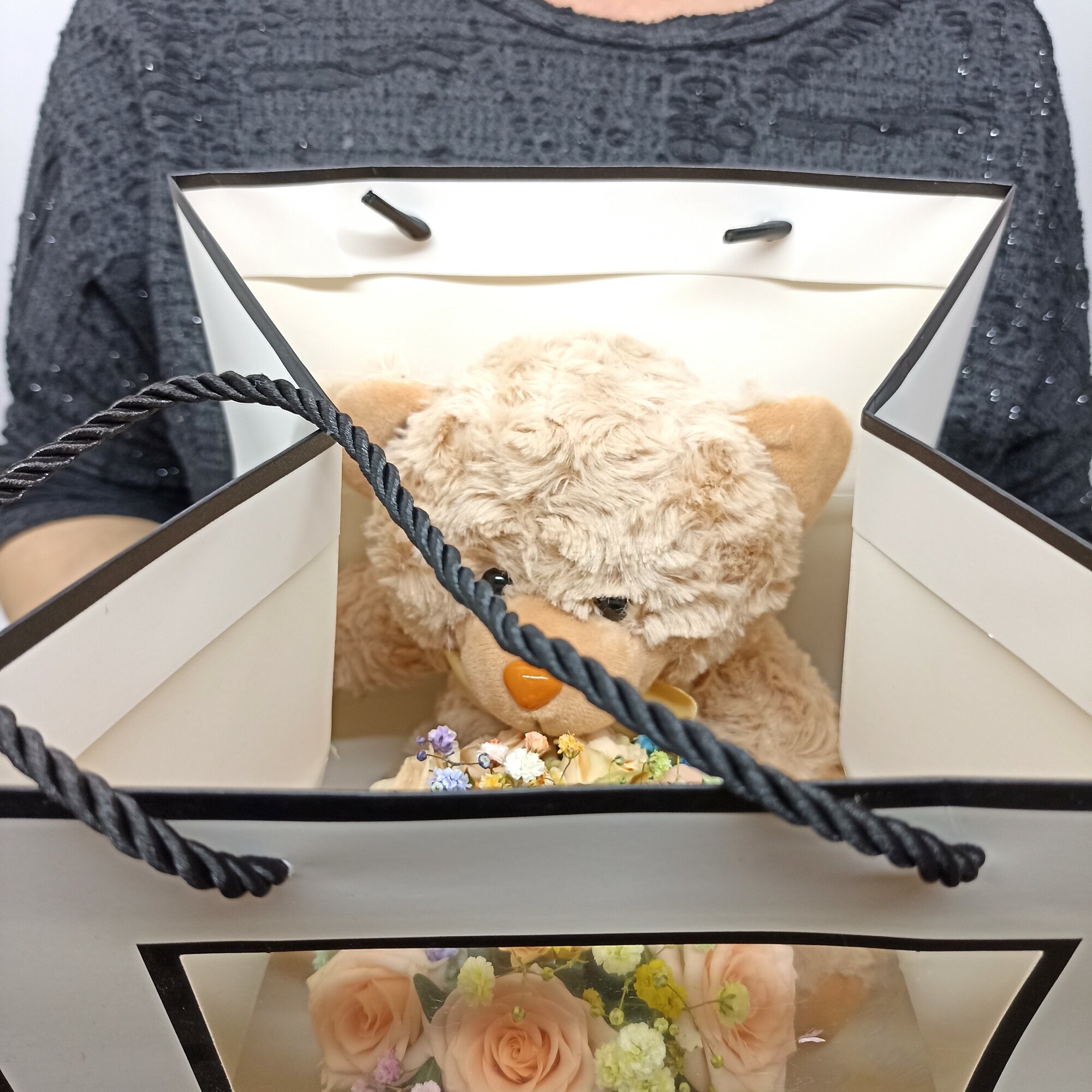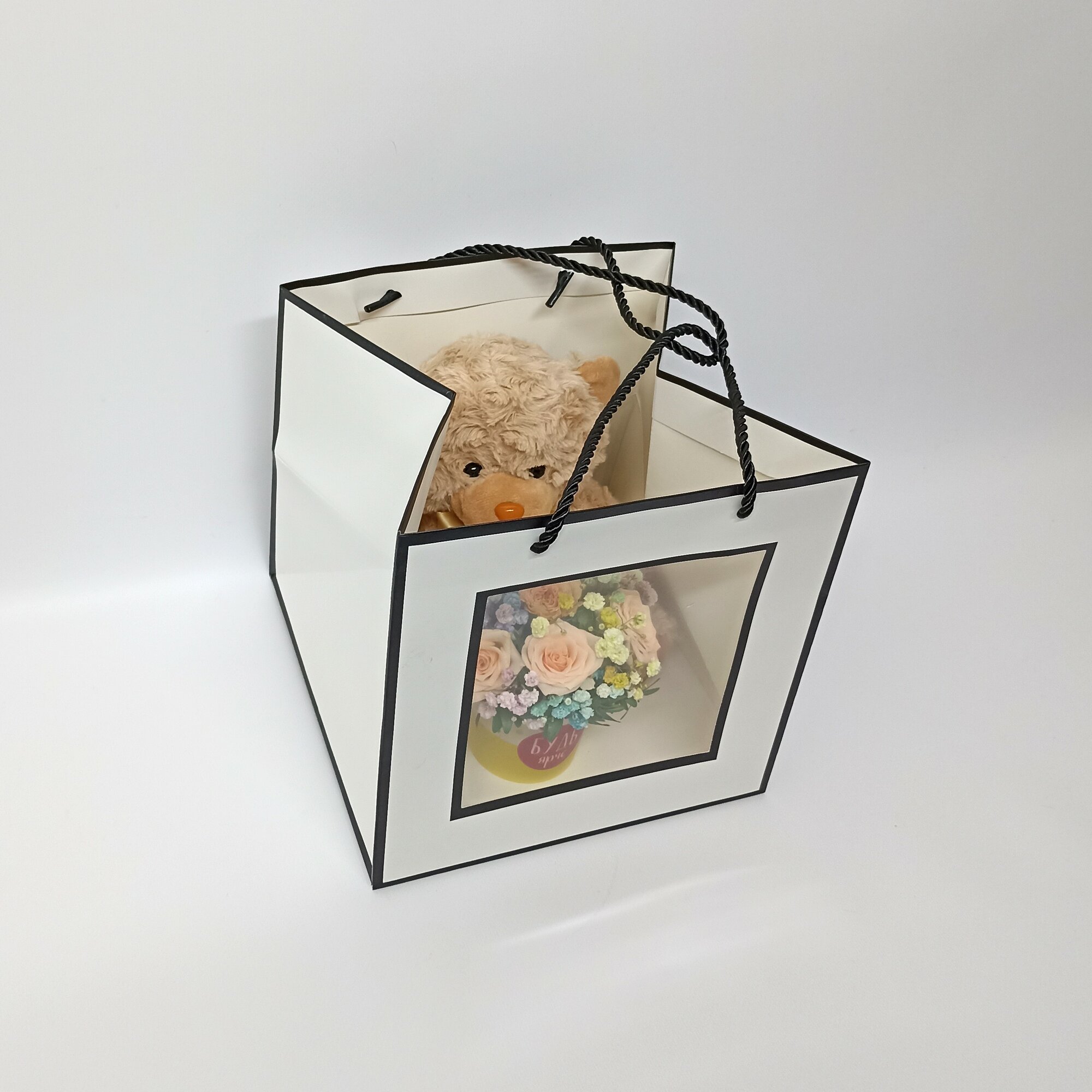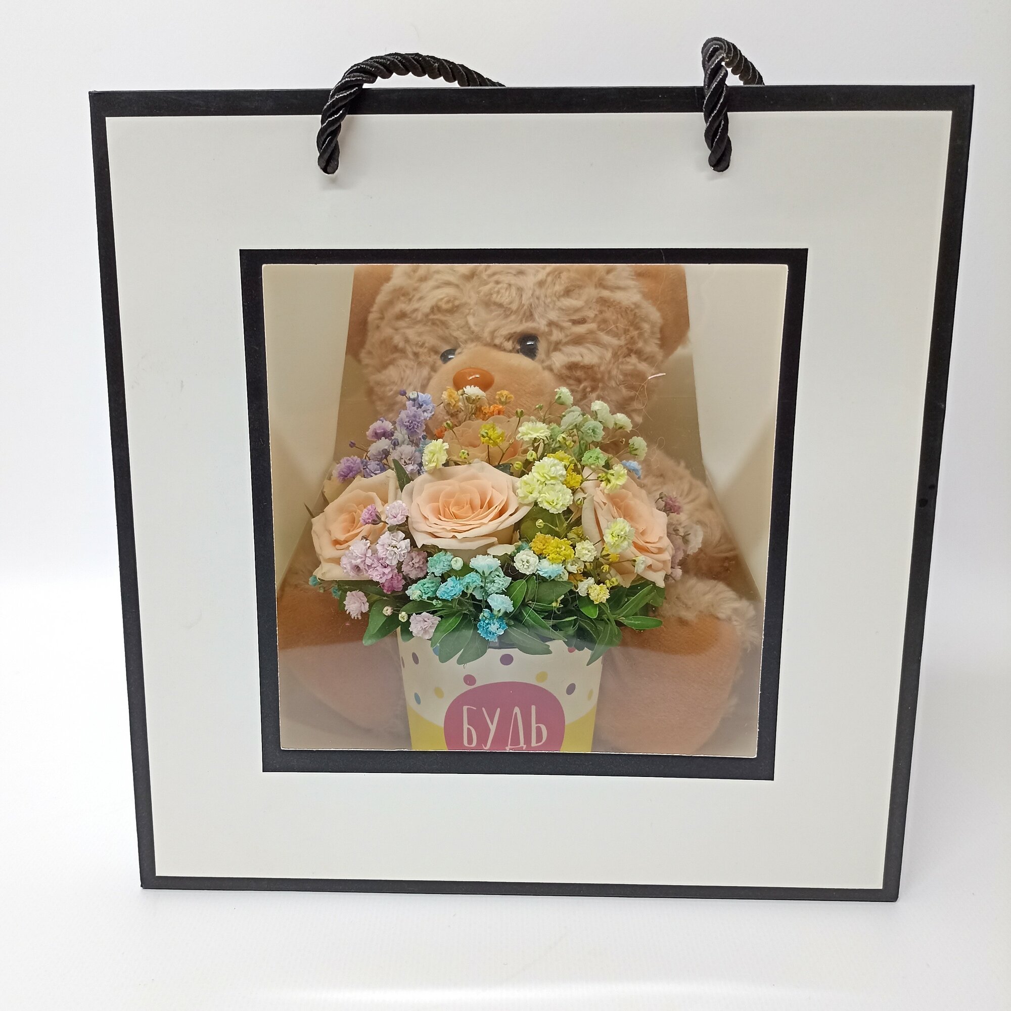 Купить Сумочка с букетом и плюшевым мишкой