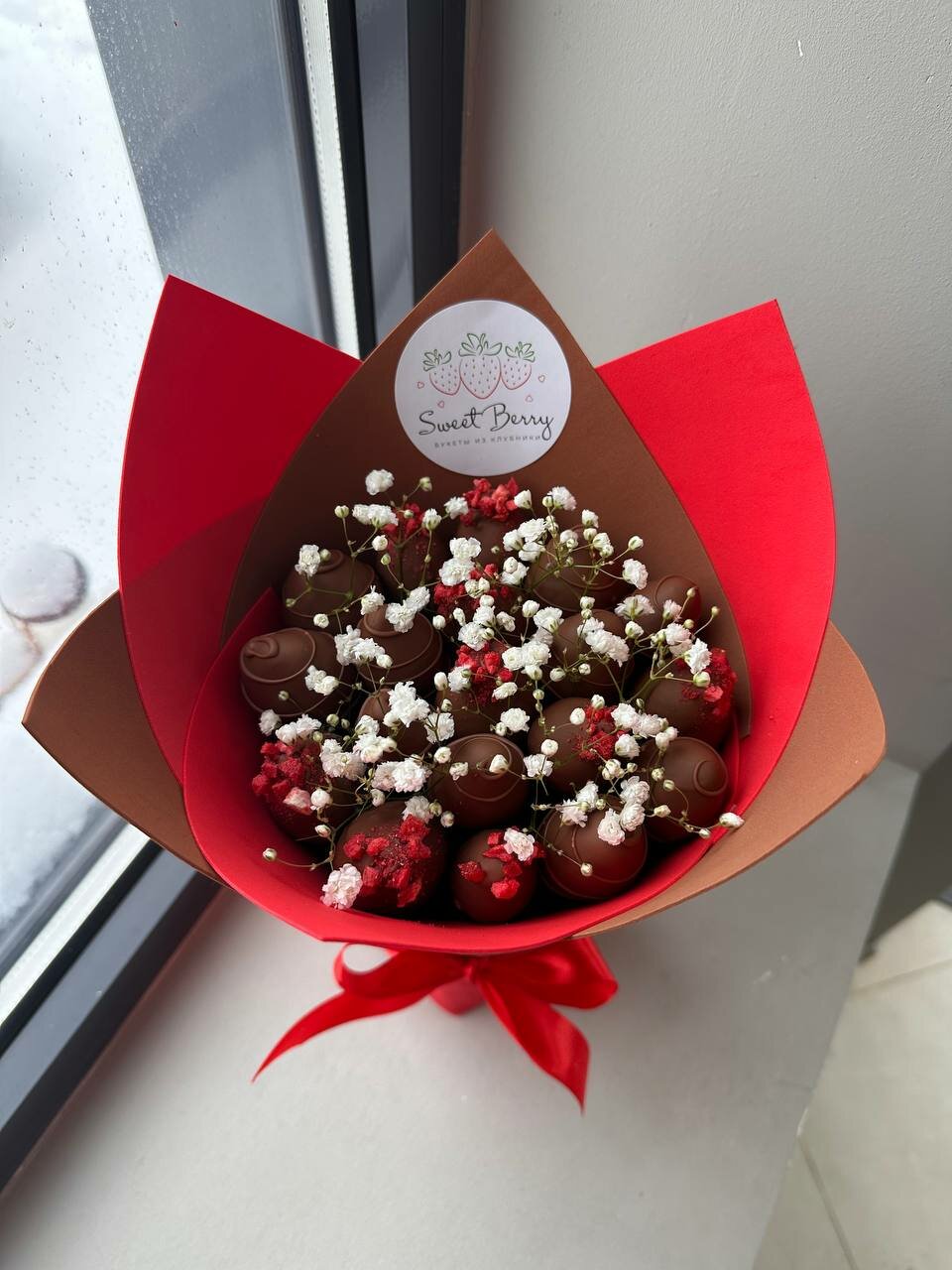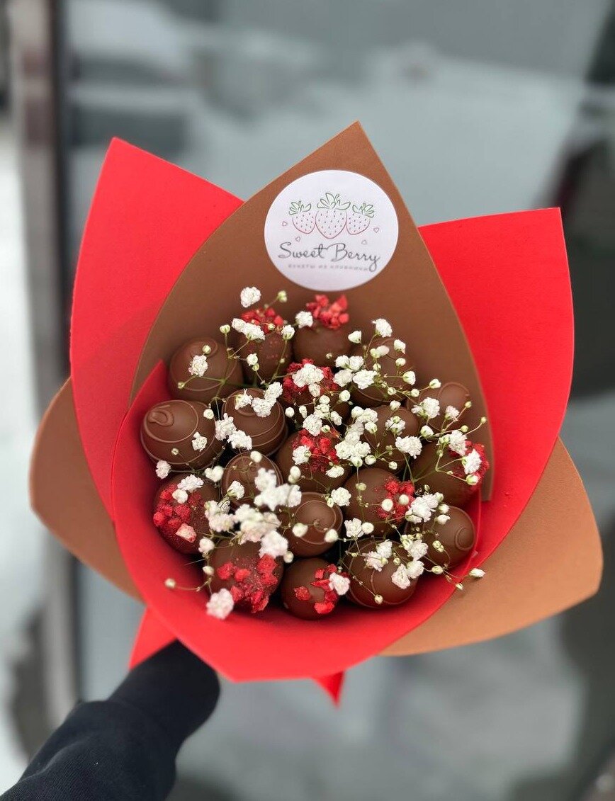Нежный букет из гипсофилы и клубники в шоколаде - "Шоколад" Sweet Berry интересное: