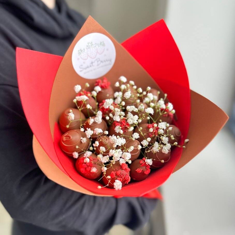 Купить Нежный букет из гипсофилы и клубники в шоколаде - "Шоколад" Sweet Berry