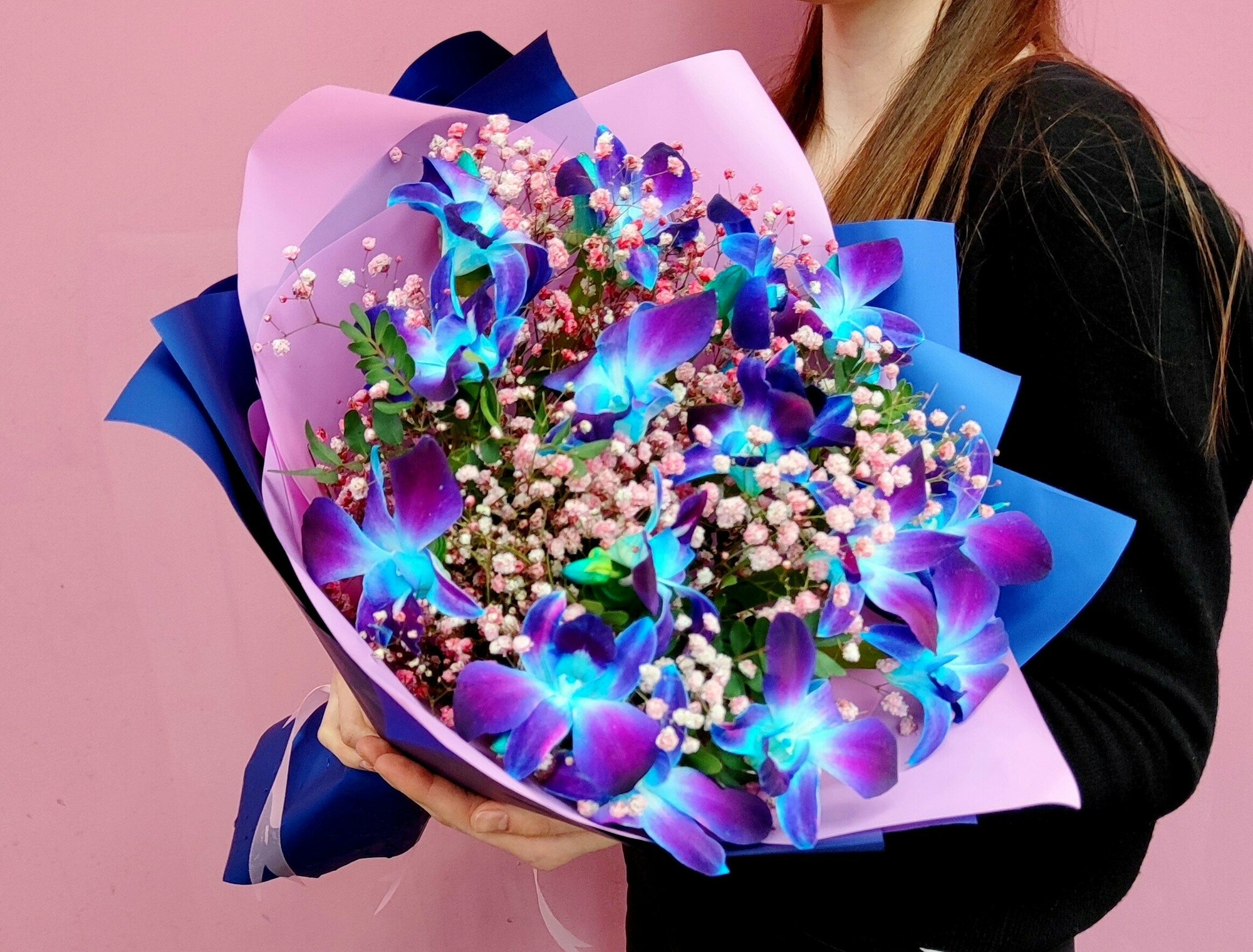| Состав | орхидея дендробиум-15 шт, гипсофила-3 шт, фисташка-3 шт упаковка дизайнерская-3 шт |