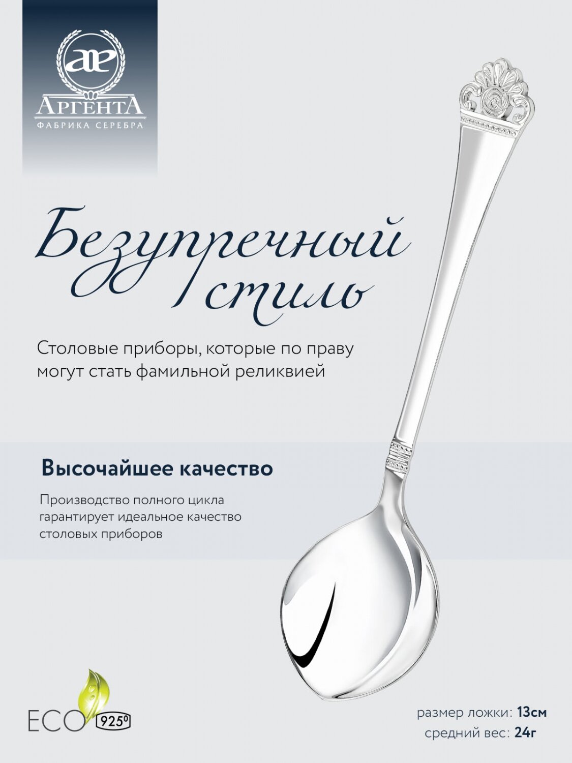 Серебряная чайная ложка с логотипом "Е" с позолотой от бренда "Аргента"