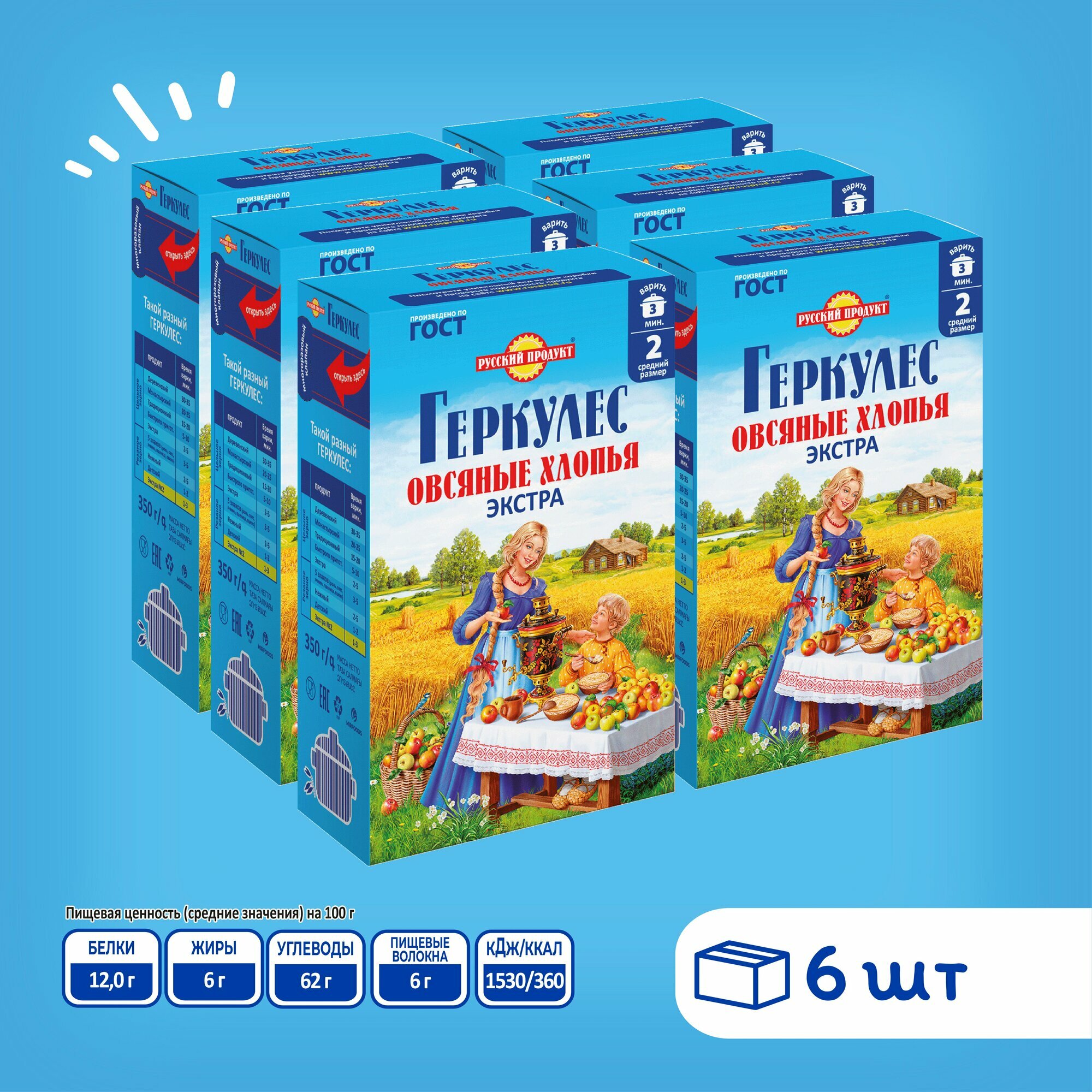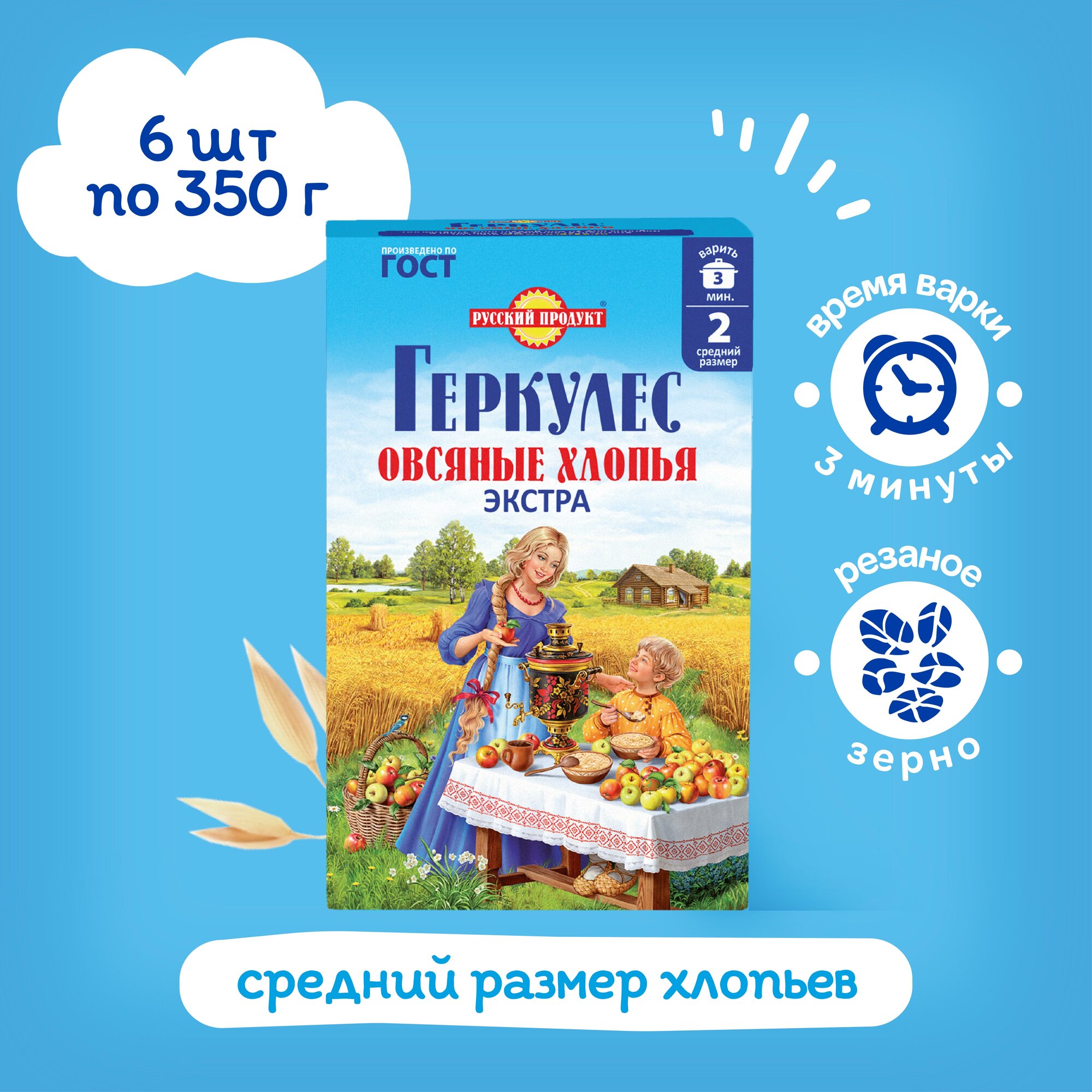 Купить Овсяные хлопья Геркулес Экстра 350 гр x 6 шт, Русский Продукт