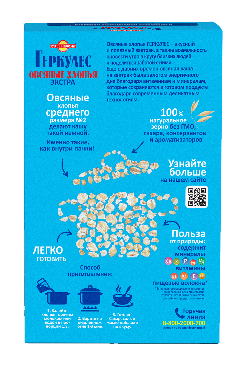 Овсяные хлопья Геркулес Экстра 350 гр x 6 шт, Русский Продукт интересное: