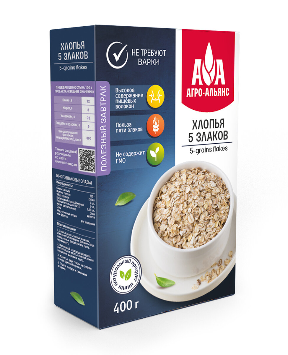 Хлопья 5 злаков "Агро-Альянс Экстра", 400г интересное:
