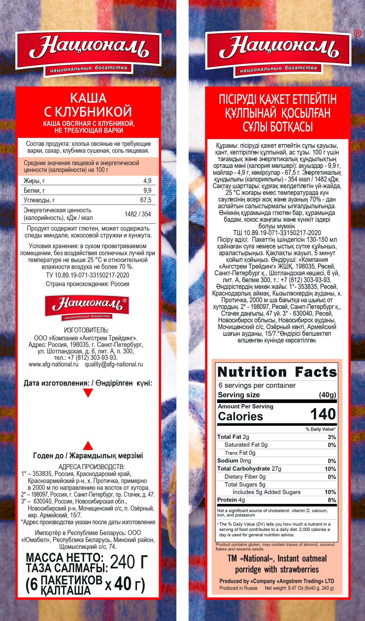 Каша овсяная с клубникой Националь 6 порций, 240 г интересное: