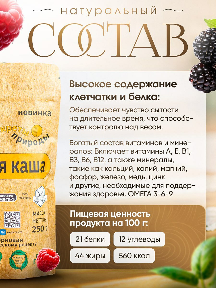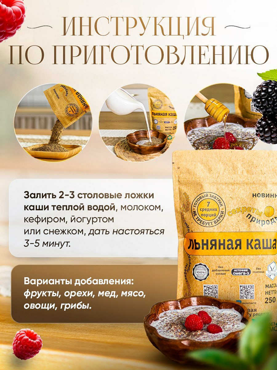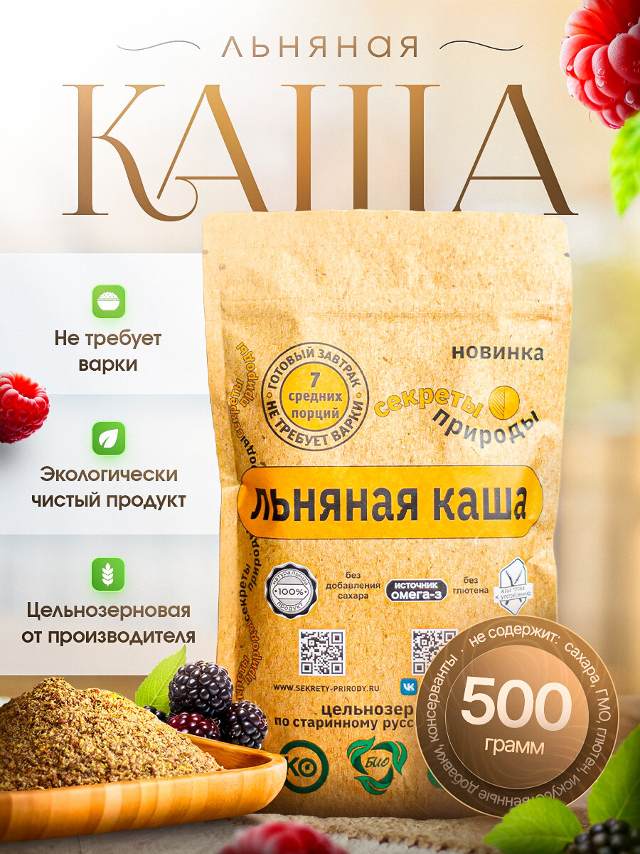 Каша льняная "Секреты природы", 500 гр, цельнозерновая, быстрого приготовления, диетическая, диабетическое питание интересное: