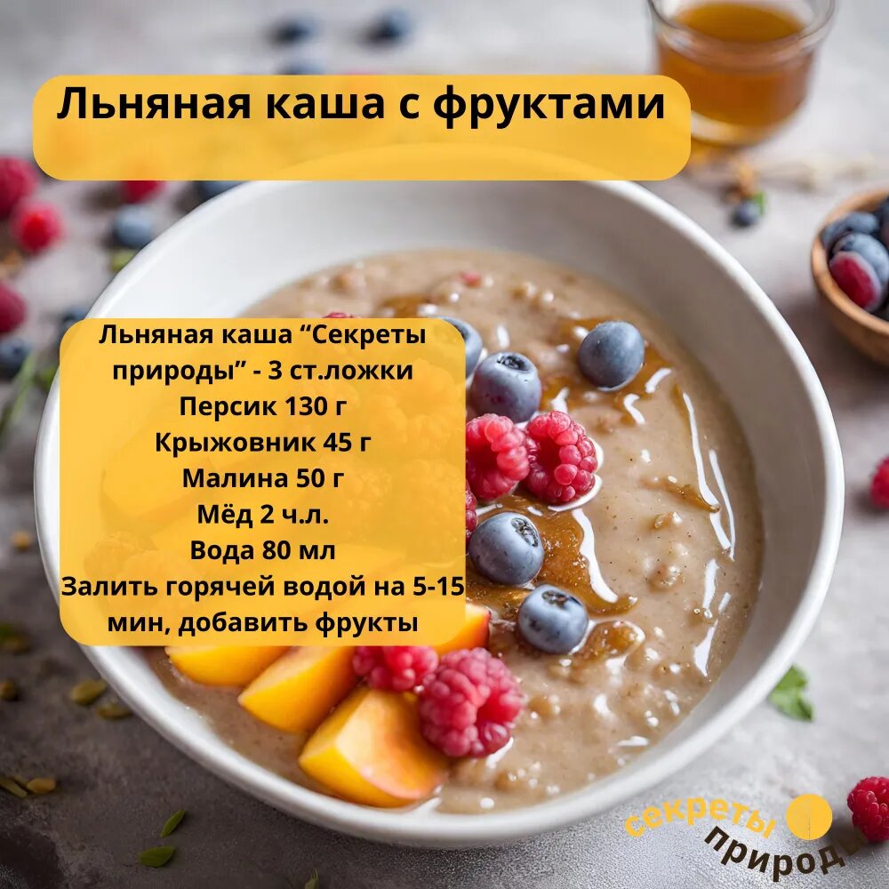 Каша льняная "Секреты природы", 250 гр, цельнозерновая, быстрого приготовления, диетическая, диабетическое питание интересное: