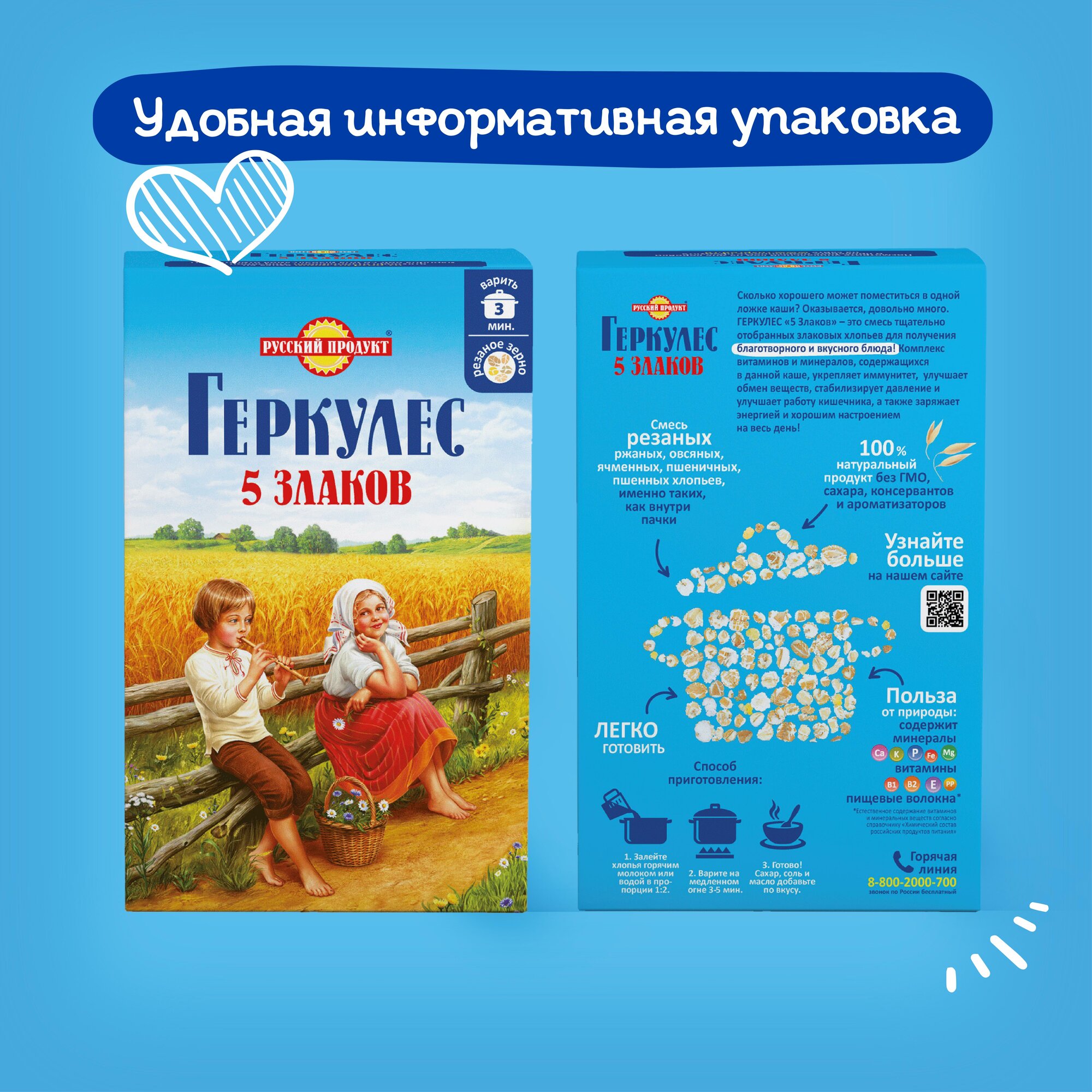 Хлопья Геркулес 5 злаков 400 гр x 6 шт, Русский Продукт интересное: