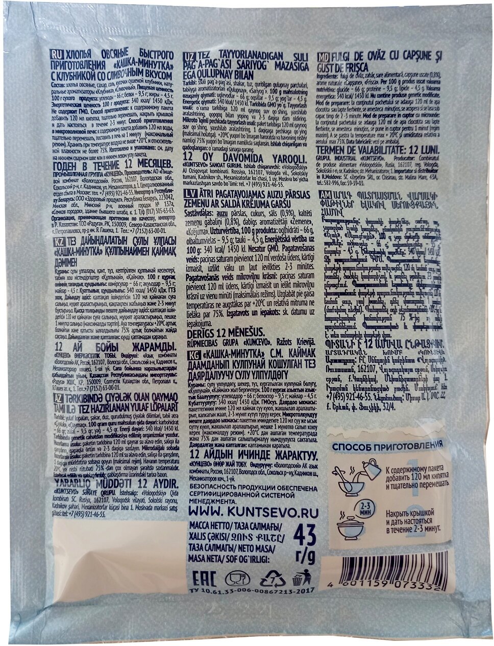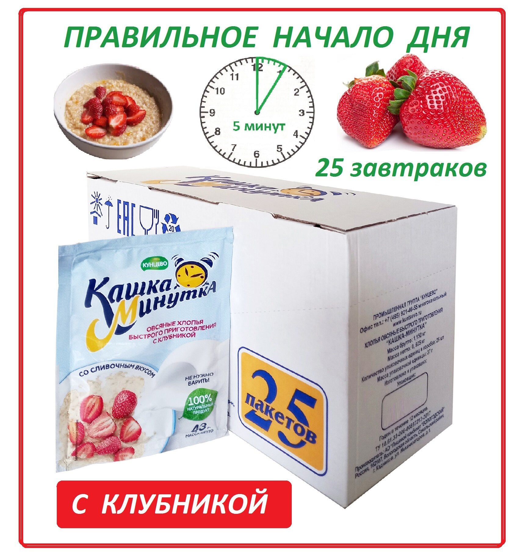 Хлопья овсяные "Кашка-Минутка" клубника со сливками интересное: