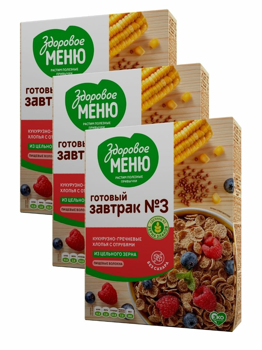 Хлопья кукурузно-гречневые Здоровое меню №3 с отрубями 200г. Набор 3 шт. интересное: