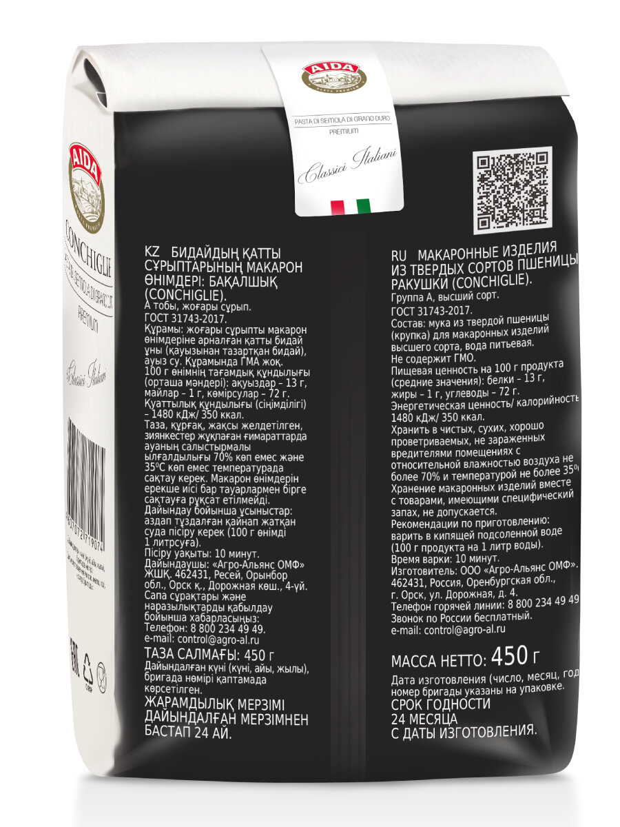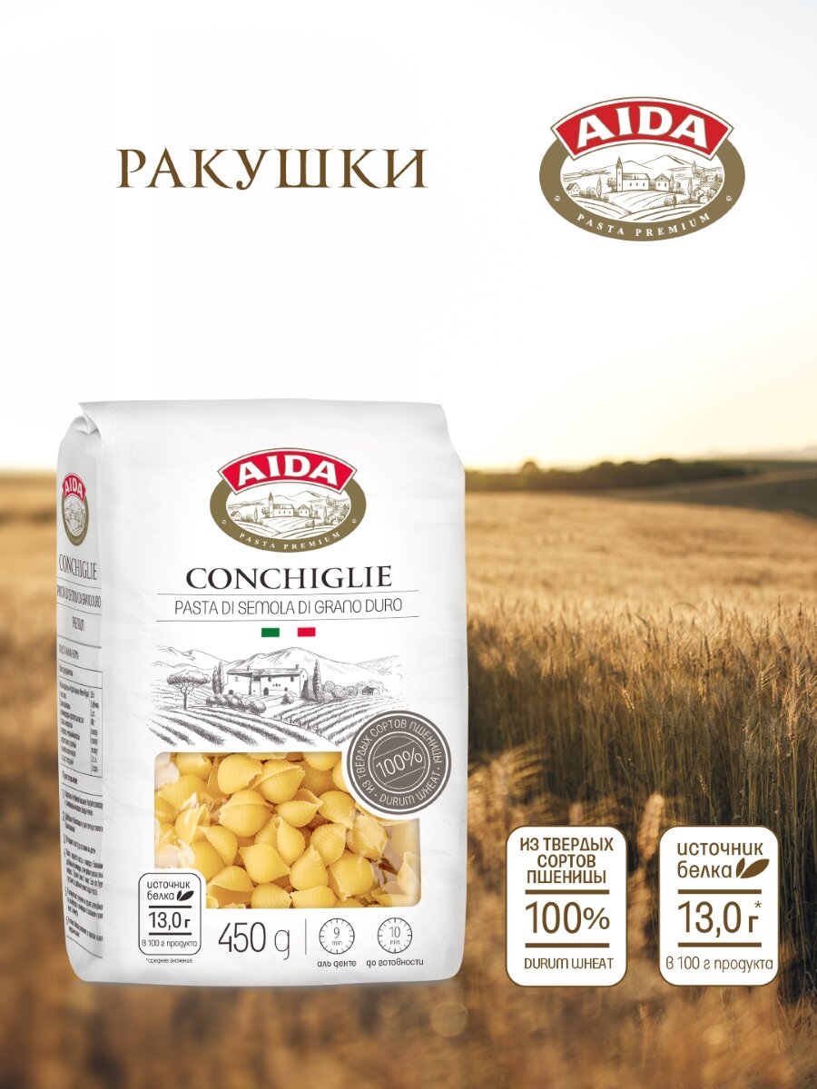 Макаронные изделия AIDA Conchiglie/Ракушки 450г интересное: