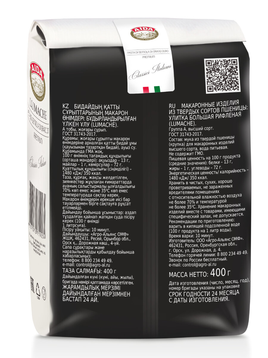 Макаронные изделия AIDA Lumache/Улитки 400г интересное: