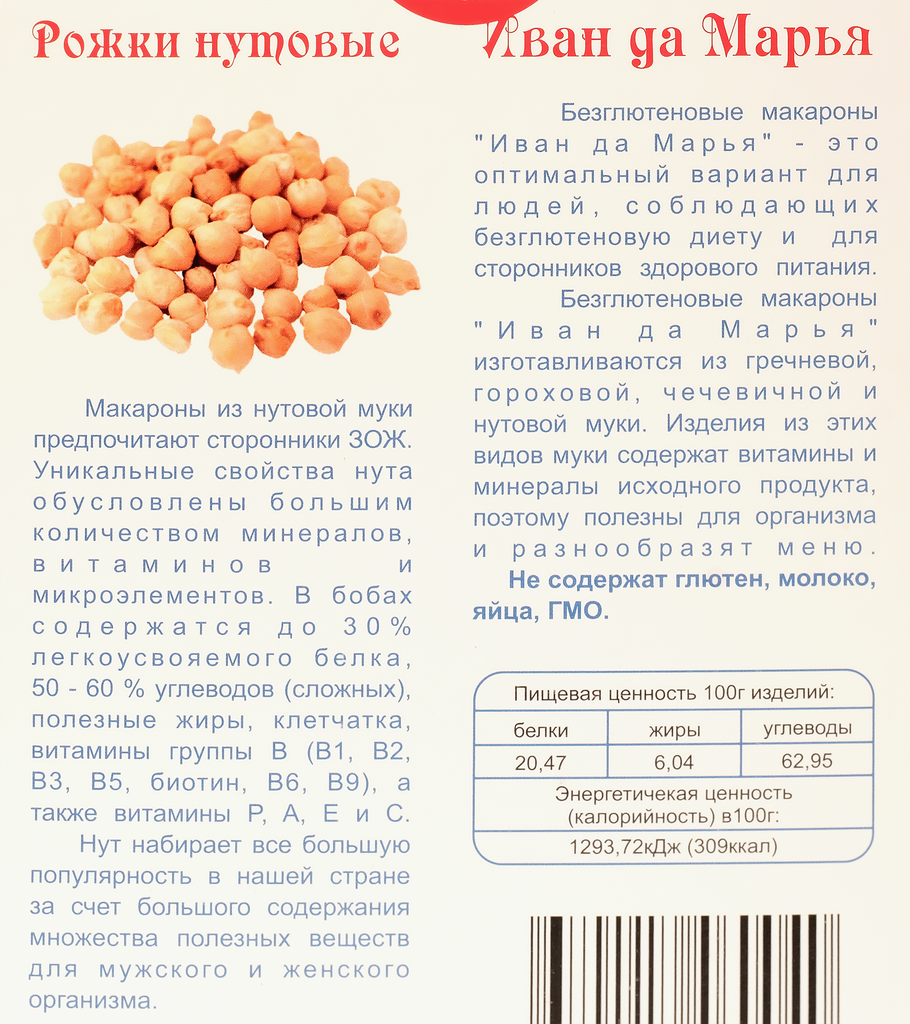 Макаронные изделия Рожки нутовые "Иван да Марья" интересное:
