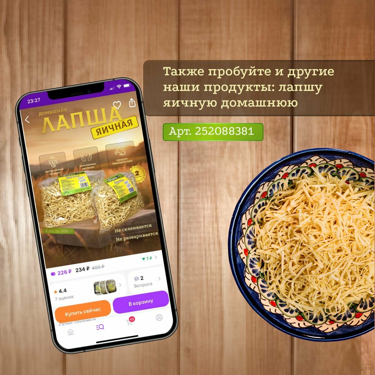 | Вид лапши | Пшеничная |