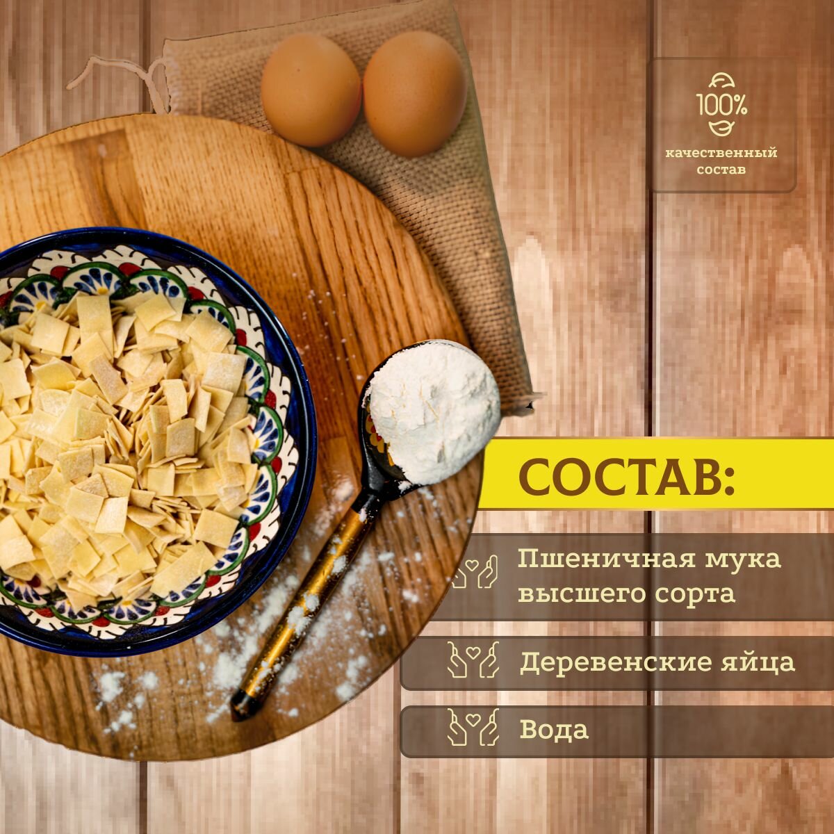 | Состав | мука пшеничная в/с, яйцо, вода |