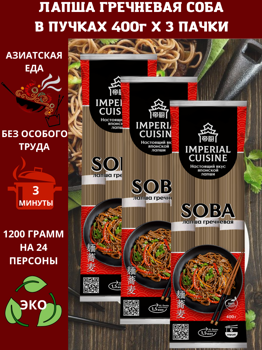 Ниже Вы можете прочитать отзывы на Макаронные изделия "Лапша гречневая соба в пучках "Imperial Cuisine" 400гр.х3шт, ознакомится с подробными характеристиками, посмотреть интересные обзоры и фотографии на Макаронные изделия "Лапша гречневая соба в пучках "Imperial Cuisine" 400гр.х3шт.