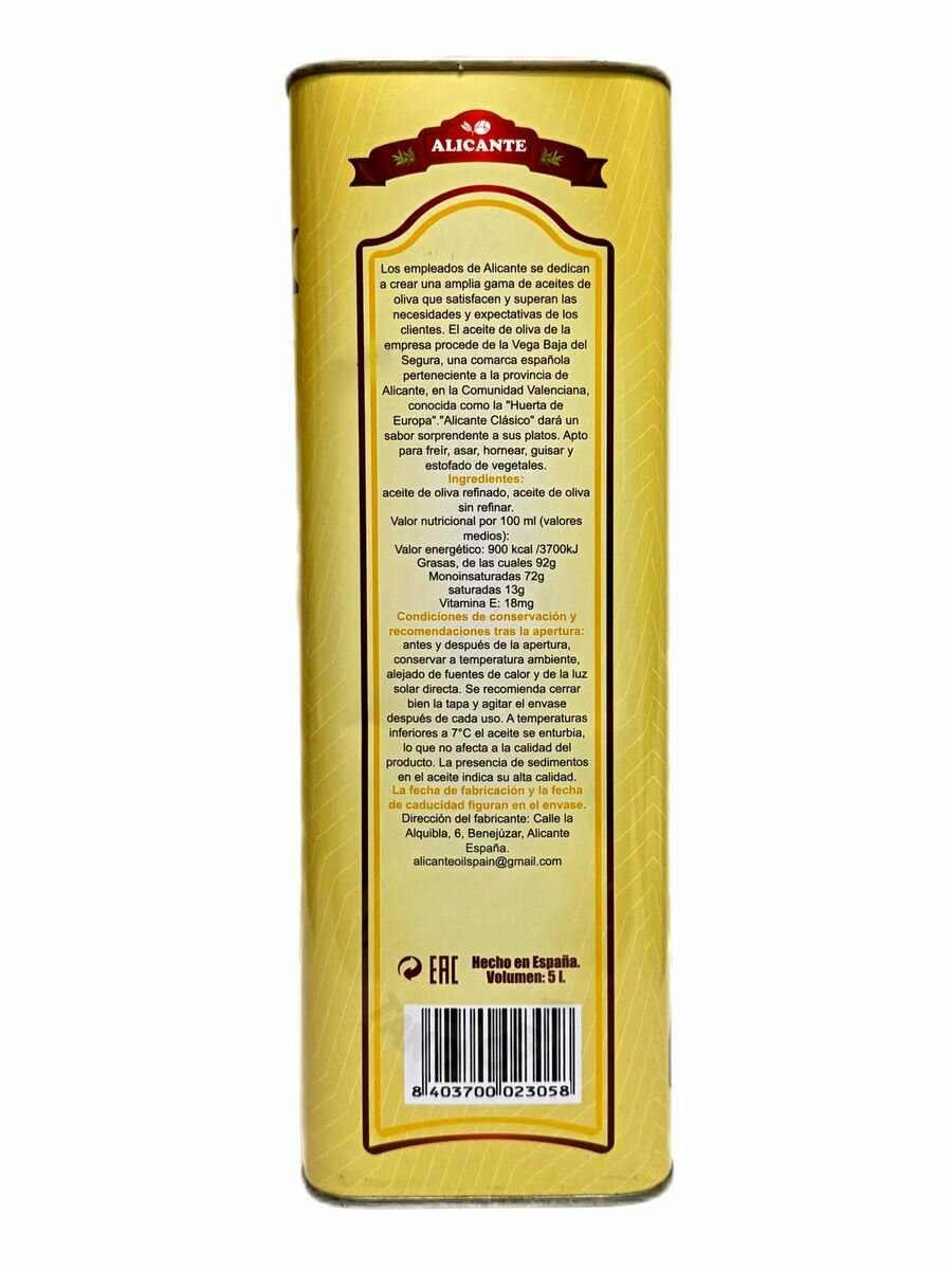 Купить Оливковое масло для жарки Alicante рафинированное, жестяная банка, Испания, 5 л