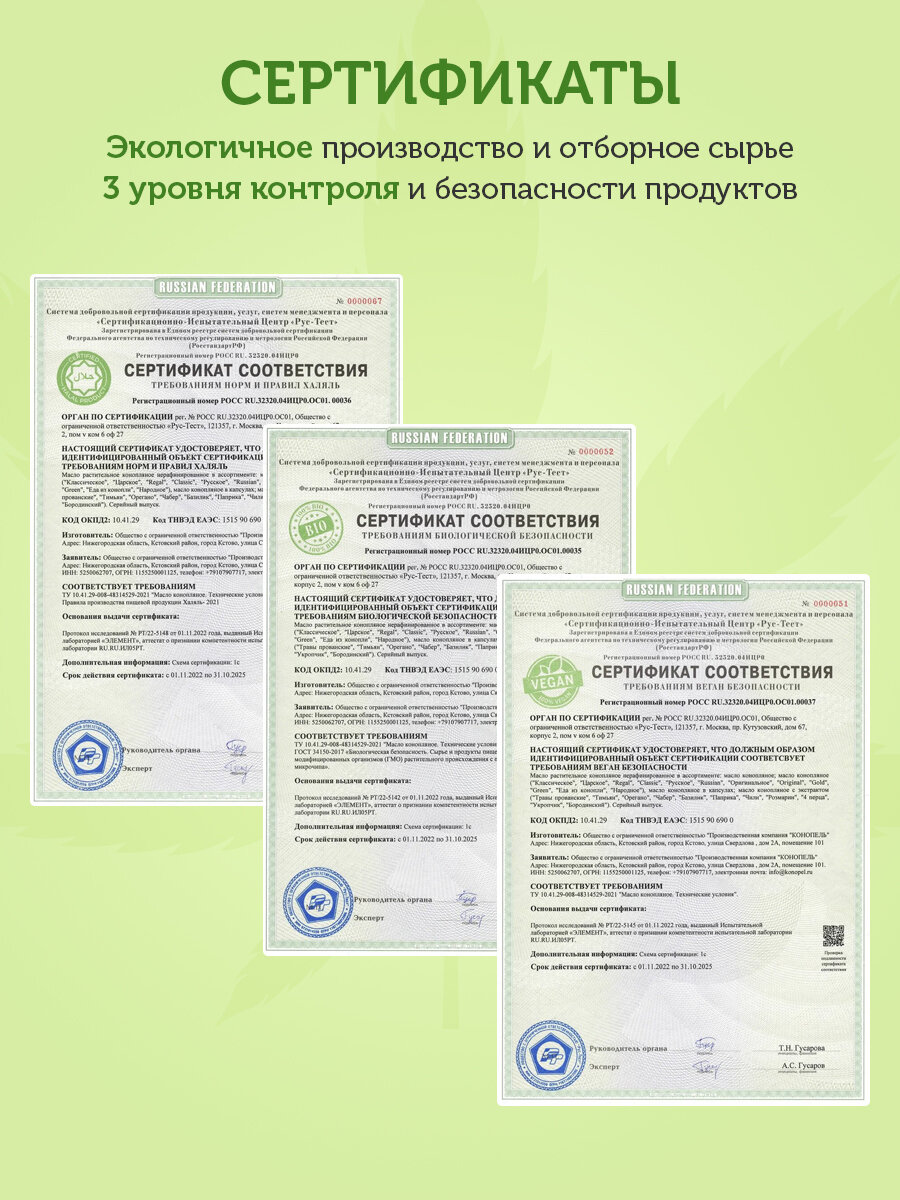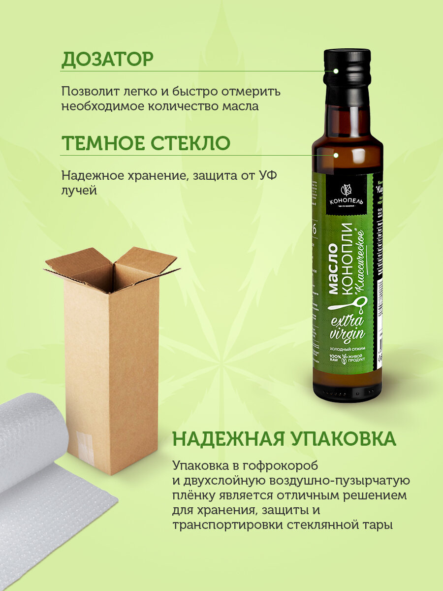 | Состав | Масло конопляное из семян 100% натуральное не разбавленное; без добавок |